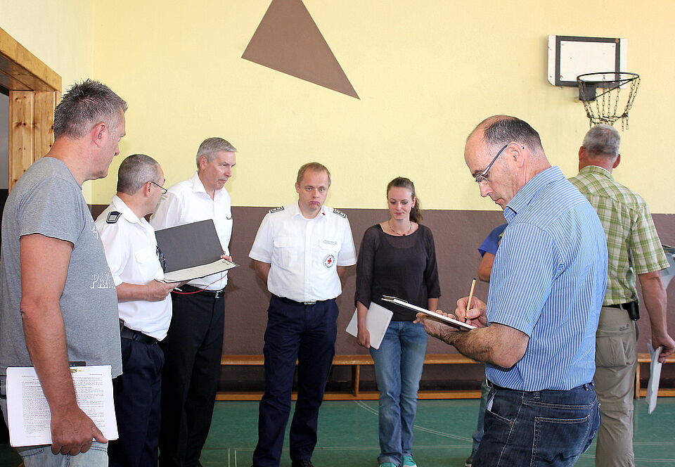 Trotz der herausfordernden Situation bleiben die Rotkreuzler gelassen. Auch, weil sie mit der spontanen Unterbringung und Betreuung von 50 Flüchtlingen im Februar diesen Jahres bereits erprobt sind. „Damals war der Aufwand noch größer, weil auch das Verpflegungsteam im Einsatz war“, so Klöcker. Zudem gibt es auch so einiges zu klären. Unter anderem steht Rolf Klöcker in Kontakt mit dem Gesundheitsamt, um die teils vermutlich nötige Erstuntersuchung der Menschen in die Wege zu leiten. Ob dies nötig ist, hängt davon ab, ob die Flüchtlinge bereits an anderer Stelle inner- oder außerhalb Deutschlands registriert und untersucht wurden.