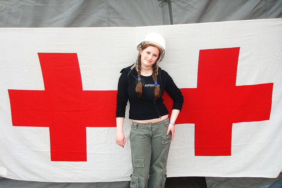 "Gestern noch hat die Jugendrotkreuzlerin (JRK'lerin) hier bei uns mitgeholfen; heute hilft Cathryn Bassett in Afrika."