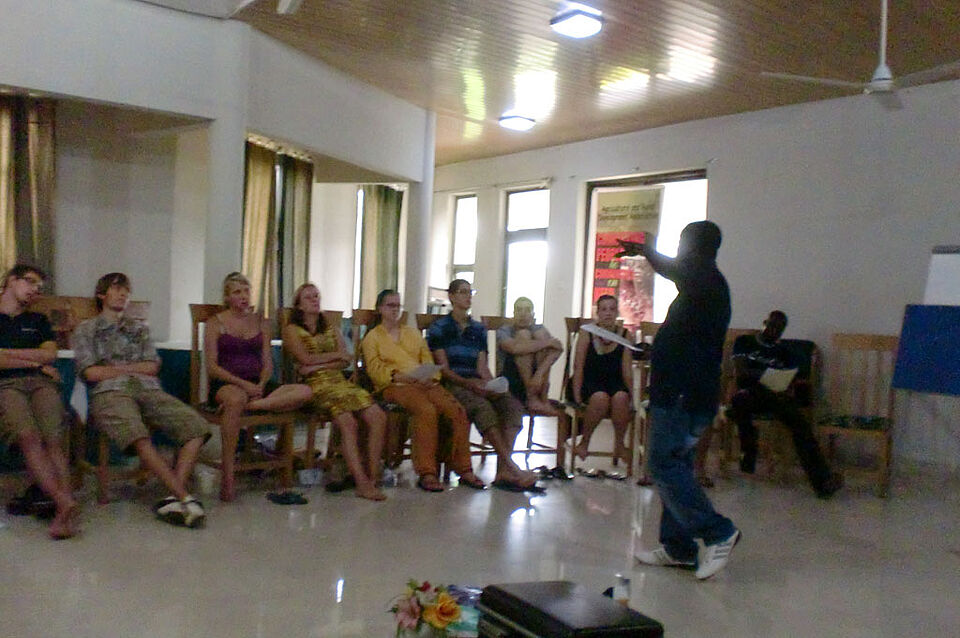 Ghana - „alles neu“neuer Arbeitsplatz, neue Kollegen, neue Aufgaben ...... mein Novermber begann mit einem Gemeinschaftsausflug aller Freiwilligen der Eastern Region, das heißt mit all denjenigen, die entweder aus Koforidua, Nankese, Basko oder wie ich aus Akwatia kommen.Es ging zum Cocoa Research Institute nach Tafo, in der Nähe von Koforidua. In einer etwa eineinhalbstündigen Führung über das Gelände, mit anschlieβendem Besuch der angrenzenden Kakaoplantagen des Instituts, erfuhren wir alles Wissenswerte über den Aunbau von Kakao und die Arbeit des Instituts.Das Cocoa Research Institute of Ghana wurde 1938 gegründet und spielt seither eine wichtige Rolle in der afrikanischen Kakaoforschung. Ghana gehört neben Indonesien und Brasilien zu den gröβten Kakaoexporteuren der Welt.Zu den Aufgaben des Instituts gehören neben der Forschung zur Optimierung der Kakaoproduktion auch die Ausbildung der Kakaofarmer, sowie die Herstellung hauseigener Kakaoprodukte wie Cremes, Kakaomarmelade und Kakaopulver.Zu Beginn des Monats November habe ich meinen Arbeitsplatz gewechselt. Zwar arbeite ich immer noch im St. Domenics Hospital in Akwatia, jedoch nicht mehr wie in den vergangenen Monaten auf der Childrens Ward, sondern in der Casualty (Notaufnahme).Als LTV (Long Term Volunteer; Aufenthalt länger als 6 Monate) hat man in den meisten Krankenhäusern die Möglichkeit, zwischen den einzelnen Wards zu rotieren, um einen besseren Gesamteinblick in die Arbeit des jeweiligen Krankenhauses zu bekommen.Mit meinem Stationswechsel hat sich natürlich auch mein Aufgabenfeld fast grundlegend verändert. Während es auf der Childrens Ward hauptsächlich um den Kontakt mit den Patienten ging, liegen meine Aufgaben in der Casualty eindeutig eher im medizinischen Bereich.Zu meinen Aufgaben gehören in diesem Fall beispielsweise Infusionen wechseln und anschlieβen, Medikamente ausgeben, das Einsortieren von Medikamenten, Verbände anlegen und wechseln, Ärzten assistieren, Vitalfunktionen überprüfen (z.B. bei der Aufnahme eines Patienten oder ein BP Monitor bei kritischen Patienten) und der täglich anfallende „Papierkram“ („Transfers“, also Verlegen auf andere Stationen, oder „Discharges“, Entlassungen).Gerade durch diese Art Verwaltungsarbeit bekomme ich einen guten Einblick in typische Krankheiten und Krankheitsbilder, da ich viel mit den Patientenakten und gleichzeitig damit auch mit den verschiedenen Ärztediagnosen arbeite. Auch das Legen von Zugängen wird schon bald zu meinen Augaben gehören können, allerdings übe ich derzeit noch an meinen Kollegen...Am letzten Wochenende dieses Monats fand unser erstes Zwischenseminar in Agona Swedru (Central Region, etwa zwei Fahrstunden von Akwatia entfehrnt) statt, da ich jetzt ja schlieβlich schon ganze drei Monate hier in Ghana bin.Auf diesem Zwischenseminar ging es hauptsächlich um den Erfahrungsaustausch unter den Freiwilligen und die Evaluation der ersten Monate. Aber auch persönliche Probleme in den Gastfamilien und den verschiedenen Einsatzstellen konnten besprochen werden.Ein weiterer Bestandteil dieses Seminars war ein Ausflug zu einem ehemaligen ARA Projekt. Dabei handelte es sich in diesem Fall um die Wasseraufbereitungsanlage in Agona Swedru.Vor einigen Jahren hat ARA damit begonnen, rund um den Fluss, der diese Anlage durchflieβt, Bäume anzupflanzen, um die Verunreinigung des Wassers durch die Landwirtschaft zu minimieren.Die Aufbereitungsanlage säubert das Wasser für die gesamte Region in und um Agona Swedru und laut unseres „Guides“ ist das gereinigte Wasser aus dieser Anlage durchaus trinkbar. Was jedoch aufgrund von möglichen Verunreinigungen einiger Leitungsrohre in der Stadt nicht empfehlenswert ist.Mit diesem Seminar endet der dritter Monat meines elfmonatigen Freiwilligendienstes ...