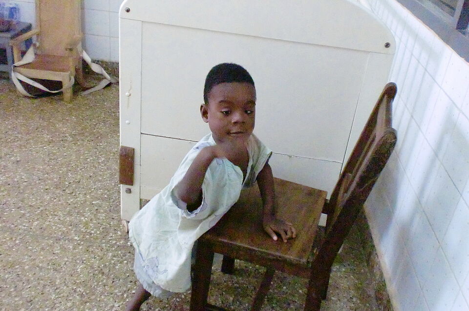 „Kinder mit Behinderungen werden von ihren Eltern oft als Bürde oder sogar als Strafe Gottes angesehen und aus diesem Grund häufig vernachlässigt oder vertoβen.“ (laut: Glovo Ghana Originaltext: Engl.) Von daher ist es auch nicht verwunderlich, das Tettey bei seinem ersten Erscheinen auf der Childrens Ward völlig unterernährt und vernachlässigt war und die Spuren dessen auch noch heute erkennbar sind.