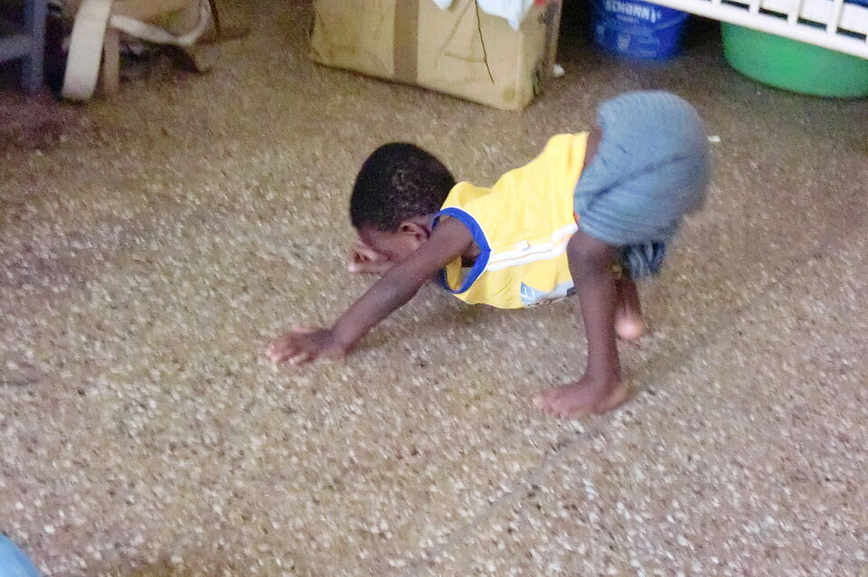 Tettey ist ca. 4 Jahre alt und lebt seit etwa 2 Jahren im St. Domeniks Hospital in Akwatia, genau genommen in der Küche der Childrens Ward. Tettey leidet seit seiner Geburt unter einer körperlichen und geistigen Behinderung. Trotzdem muss ich gestehen, dass ich selten so einen aufgeweckten und fröhlichen „kleinen Kerl“ wie ihn kennen lernen durfte. Seine Art ist vermutlich auch der Grund dafür, dass er von den meisten Angestellten nur liebevoll „Yεwild“ (der Wilde) genannt wird.