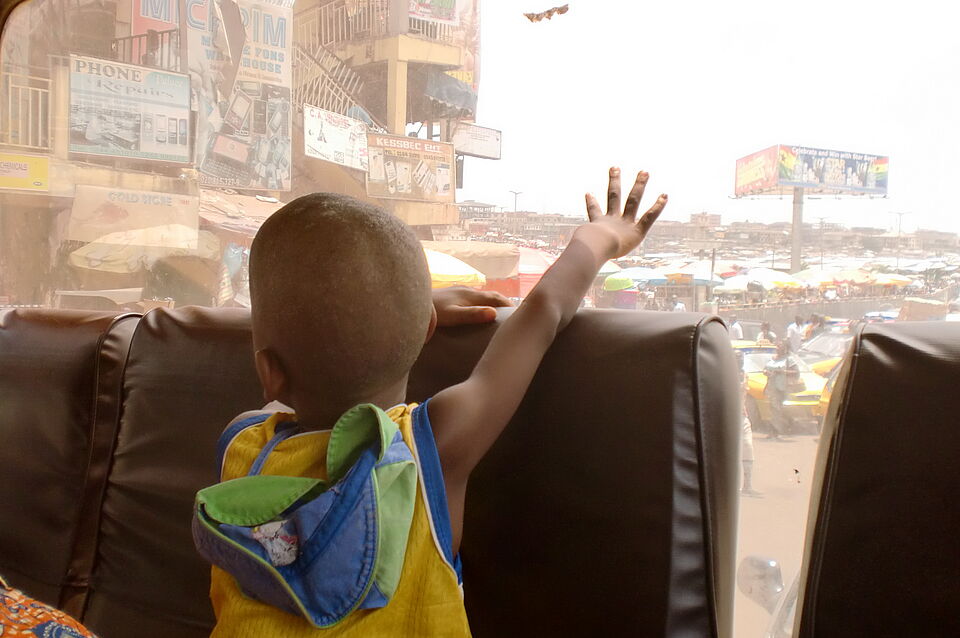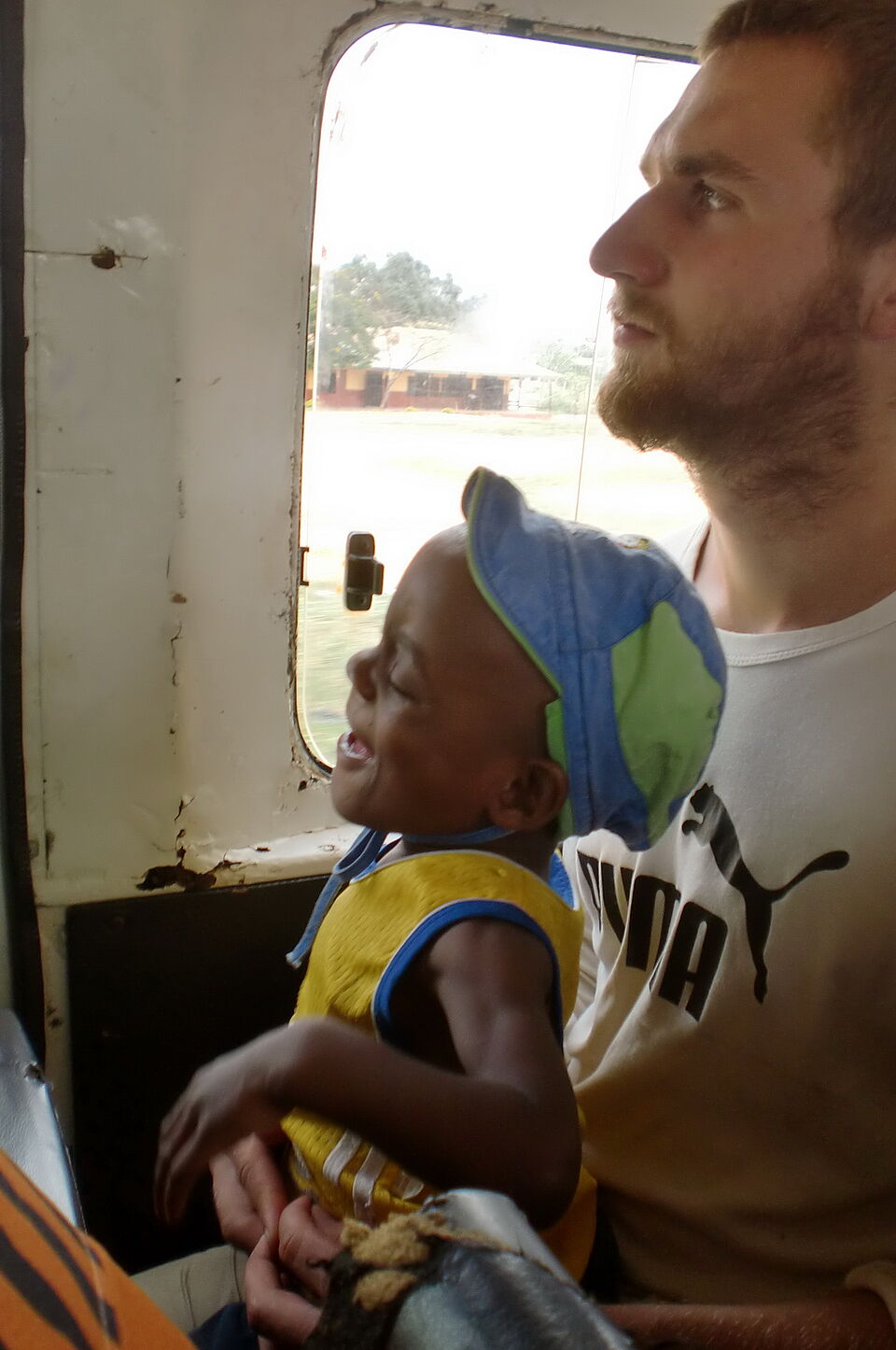 Ich schaue aus dem Fenster. Draußen sehe ich die Landschaft an uns vorbei ziehen. Es ist noch früh. Der morgendliche Nebel hängt über der Straße und die frische Luft schlägt mir kühl entgegen. In ein paar Stunden wird sich der Nebel verzogen haben und die Sonne scheinen. Es wird ein heißer Tag werden, genau wie gestern und vorgestern und all die Tage davor. Wir fahren in einem alten Tro Tro auf einer holprigen Straße Richtung Süden; vorbei an kleinen Dörfern, Häusern, Wäldern, Plantagen, Menschen und spielenden Kindern.