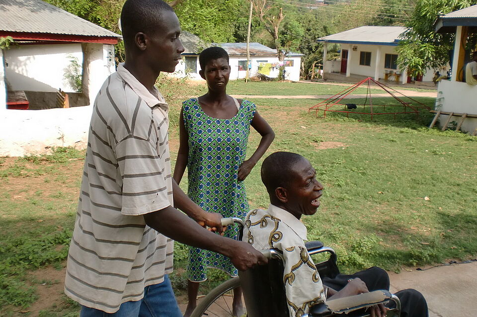 …Knapp eine Woche zuvor hatte ich zum ersten Mal in der „Hand in Hand Community“ in Nkoranza im Norden Ghanas angerufen. Die „Hand in Hand Community“ in Nkoranza wurde 1990 von der niederländischen Tropenärztin Ineke Bosman gegründet und kümmert sich seitdem, als eine der wenigen Einrichtungen in Ghana, um Kinder und Menschen mit körperlichen und geistigen Behinderungen. Ich war im Zuge meiner Arbeit mit Tettey, dem Jungen aus der Küche der Childrens Ward, auf diese Einrichtung aufmerksam geworden und man hatte mir gesagt, dass der niederländische Direktor Dr. Albert van Galen, in der Zeit von März bis April dort anwesend sei.