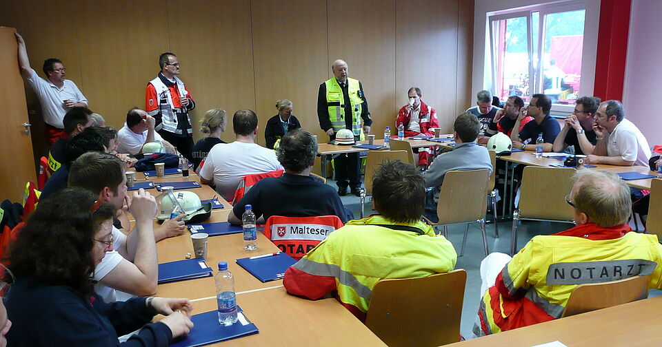 Bild DRK ZR | Nach Ende der Übung wird der Einsatz besprochen und ausgewertet.