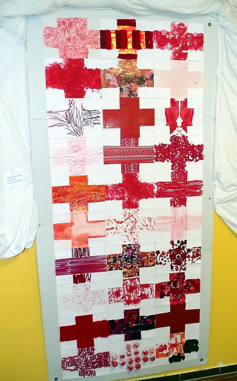 Das rote Kreuz auf weißem Grund stach den Besuchern gleich beim Betreten des Gebäudes vielfach ins Auge. Im Eingangsbereich hatten die Kinder das Symbol ihres Trägers in mannigfacher Weise nachgebildet – aus Lego, rotem Stoff, gefärbten Eierkartons, mit Stiften und Pinseln.