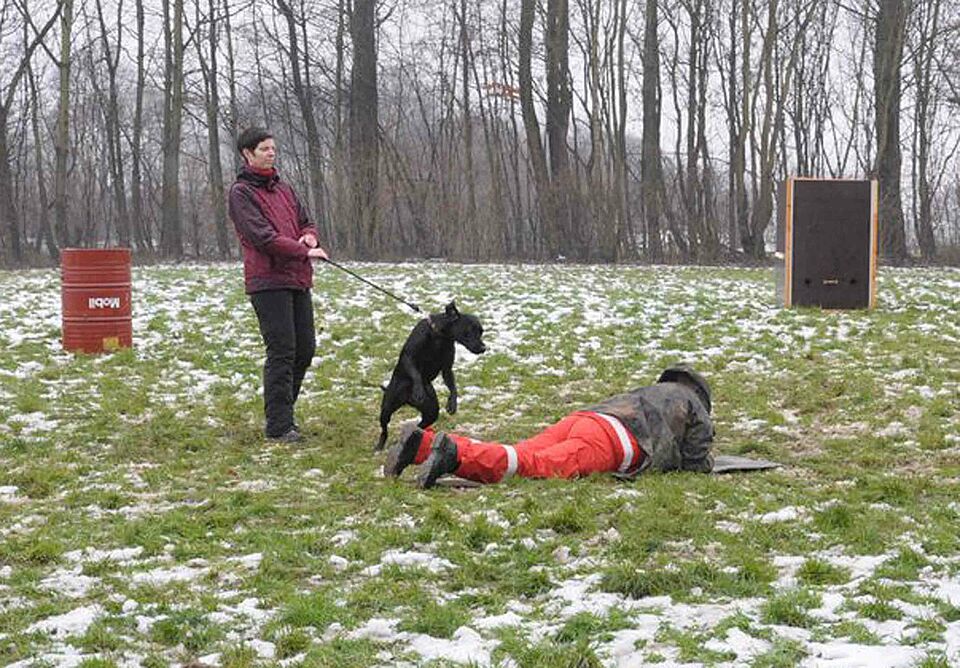 Eine, die zeigte wie es geht, war Carmen Dahm mit ihrer Labrador-Hündin „Lucy“. Was die Helfer mit dem Hund aus dem Kreisverband Euskirchen herum auch anstellten: Der Vierbeiner ließ sich nicht beeindrucken. Die Bewerterinnen waren zufrieden und Carmen Dahm erleichtert: Bestanden mit durchweg sehr guten Bewertungskennziffern. Prüfungsleiter Meertz zu den Staffeln aus Kall, Köln, Rhein-Sieg und Viersen abschließend: „Wir wünschen Euch viel Erfolg für den weiteren Ausbildungsweg.“