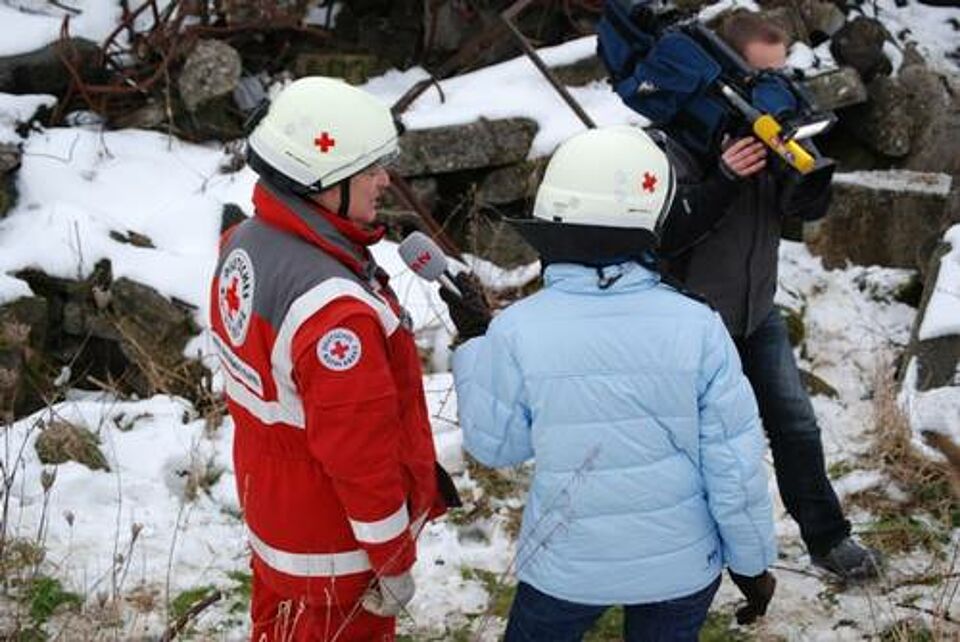 Krefeld - Die DRK-Rettungshundeteams im Landesverband Nordrhein, wozu auch die Staffel aus dem Kreisverband Euskirchen zählt, trainierten heute das Auffinden von Verschütteten auf einem Trümmergelände des Technischen Hilfswerks (THW) in Krefeld und wurden dabei von einem n-tv-Filmteam begleitet. Auch die Kaller Rettungshundestaffel nahm teil.