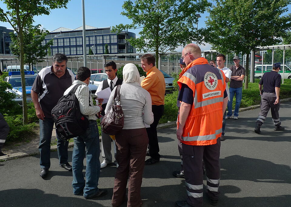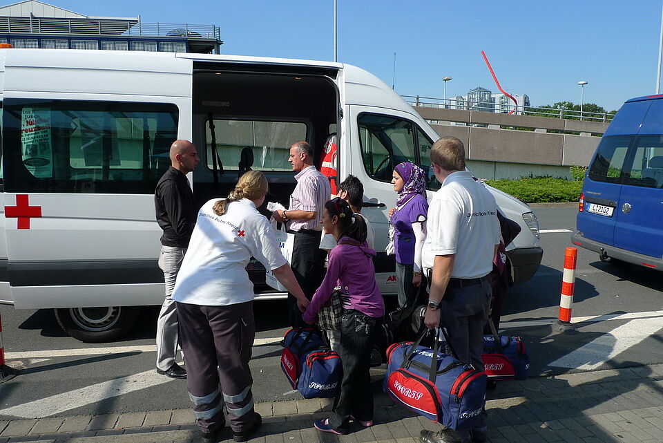 In Hannover warteten bereits Stunden vor der Ankunft des Flugzeugs aus dem jordanischen Amman viele Angehörige der Flüchtlinge. Außerdem organisierten bereits Rotkreuzler fast aus dem gesamten Bundesgebiet den anstehenden Transport.