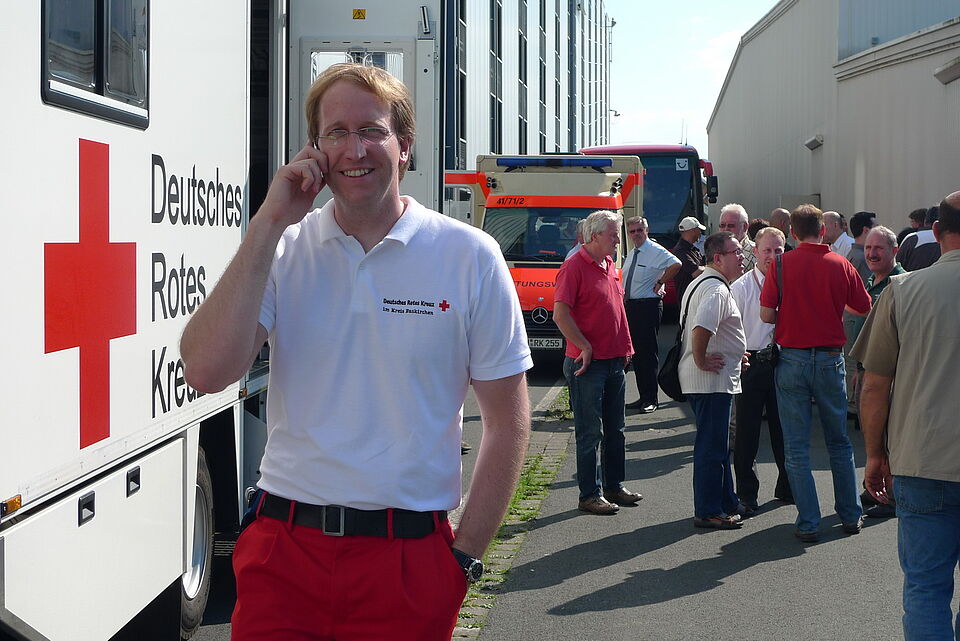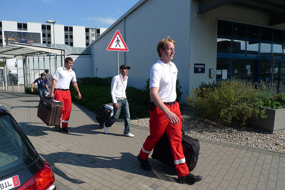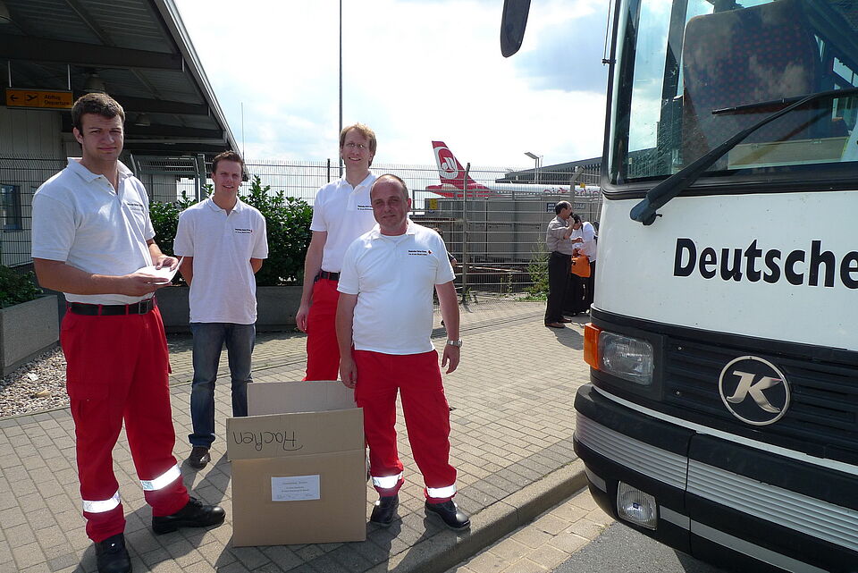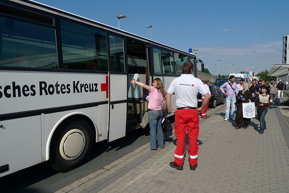 Hannover/ Aachen/ Euskirchen - Am Dienstagmorgen machten sich fünf Rotkreuzler aus dem Kreis Euskirchen auf den Weg nach Hannover, um irakische Flüchtlinge in ihre neue Heimat nach Aachen zu begleiten. Unter Leitung des Mechernicher Rotkreuz-Arztes Georg Grasmeyer waren Manuel Iskra als Rettungssanitäter, André Rarey als Busfahrer und Rolf Zimmermann und Andreas Schwill als Begleiter mit von der Partie.