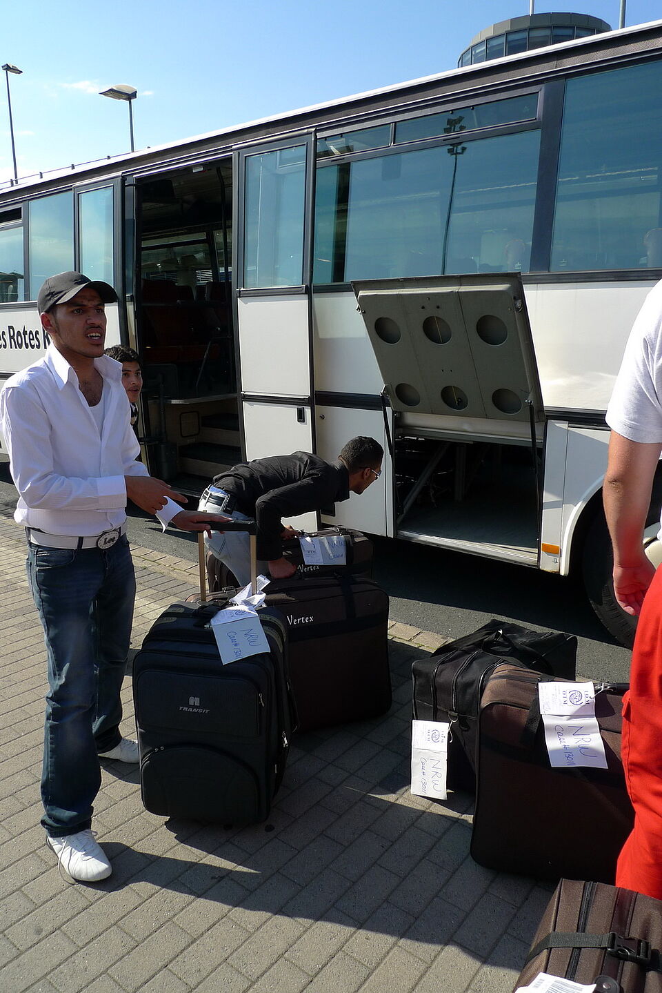 Am Dienstag, den 14. Juli, erreichen 134 irakische Flüchtlinge aus den Flüchtlingslagern in Jordanien und Syrien den Flughafen Hannover. 20 von ihnen werden künftig in Nordrhein-Westfalen leben. Das Rote Kreuz im Kreis Euskirchen begleitete eine große Familie in ihre neue Heimat Aachen.