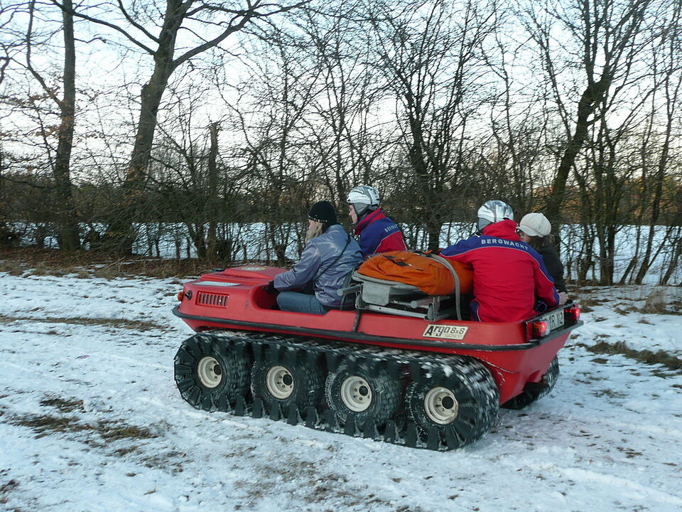 Bild DRK ZR | Hier wird eine Patientin mit dem "Argo", einem geländegängigen Einsatzfahrzeug der Rotkreuz-Bergwacht im Kreis Euskirchen, abtransportiert.