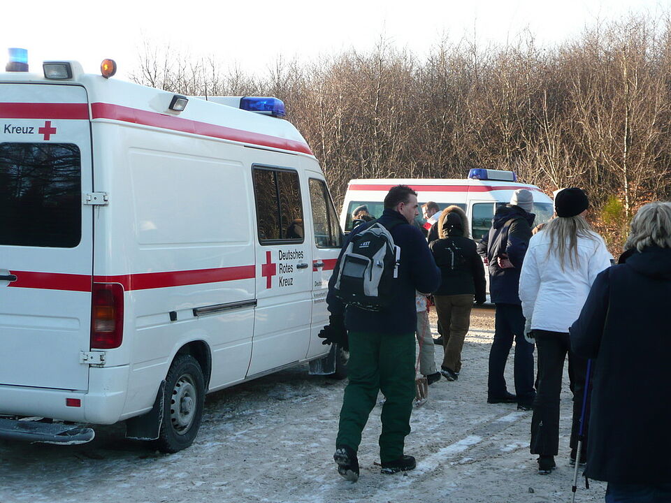 Bild DRK ZR | Für alle Eventualitäten steht am Ausgang des Wintersportgeländes auch immer ein Rotkreuz-Rettungswagen bereit.