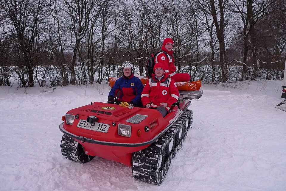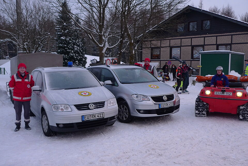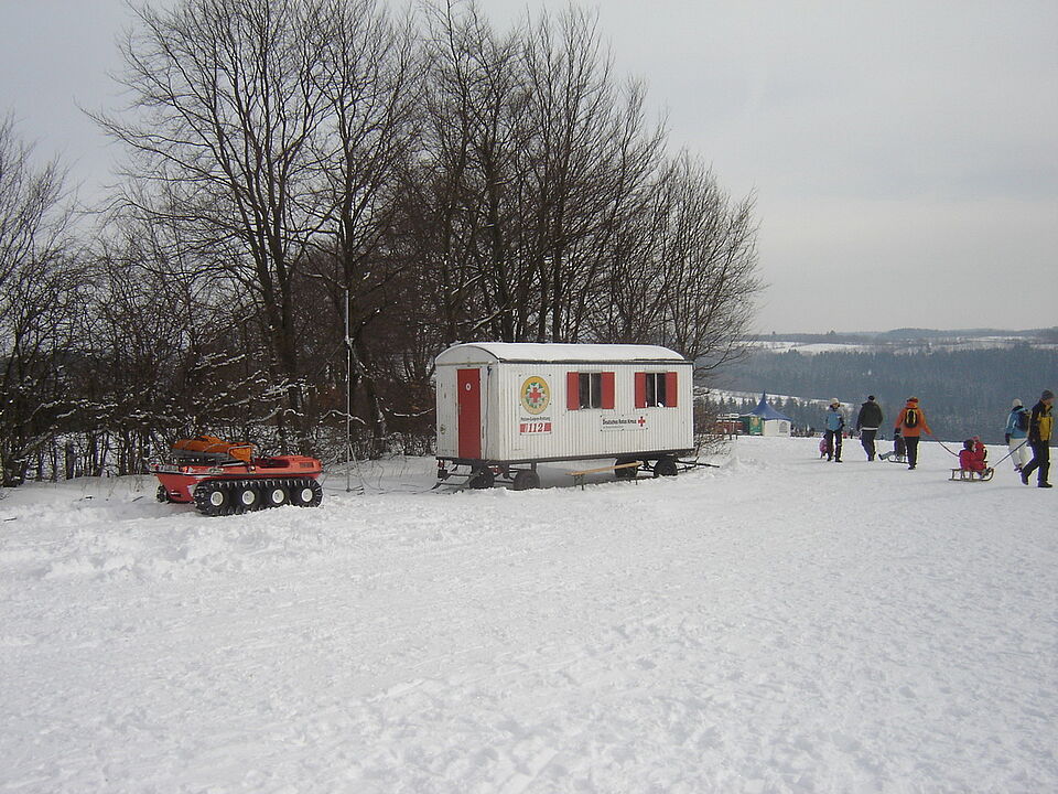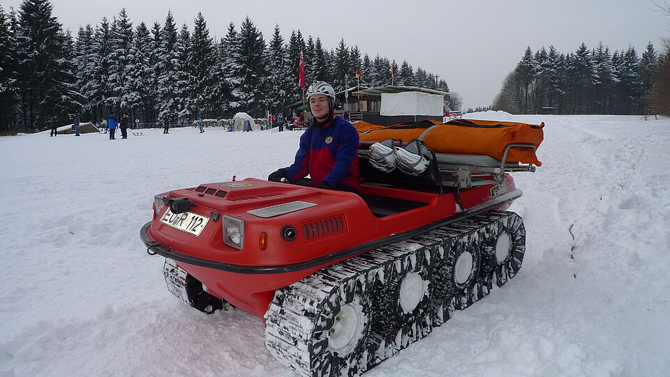 Die Bergwachtler des Roten Kreuzes waren für den Fall der Fälle gut gerüstet und mit ihrem Argo, einem geländegängigen Fahrzeug, direkt zur Stelle, um im Ernstfall verunglückte Skifahrer oder Rodler schnell aus dem Hang zu retten und an die Kollegen des Rettungsdienstes zu übergeben.