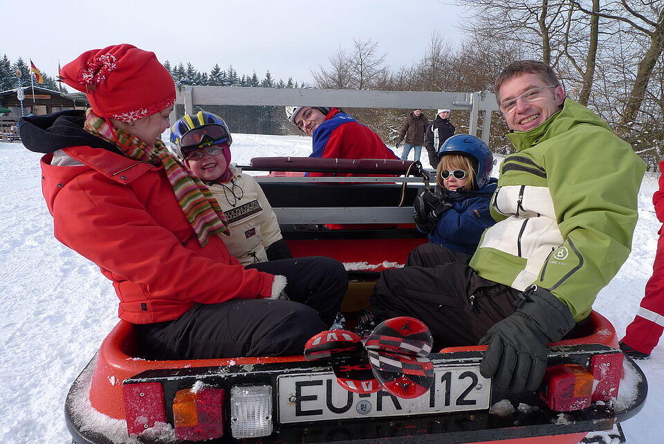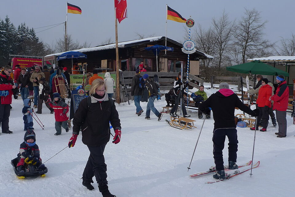 Hochbetrieb im Wintersportgebiet am Weißen Stein in Udenbreth.
