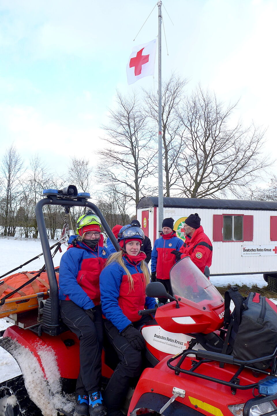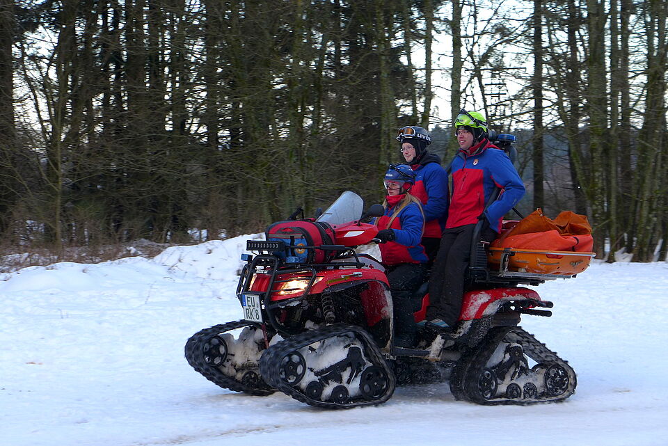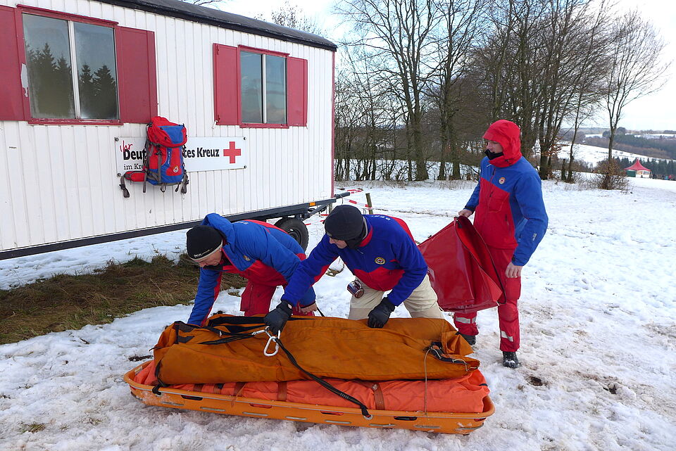 Im Wintersportgebiet Udenbreth trafen sich am Sonntag die Einsatzkräfte der Rotkreuz-Bergwacht zur gemeinsamen Fortbildung.