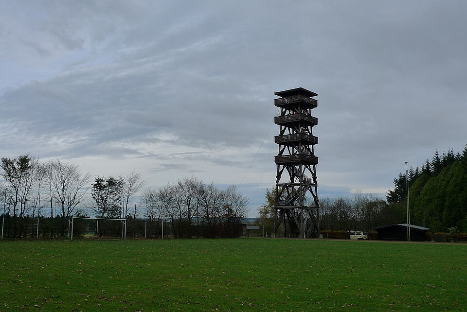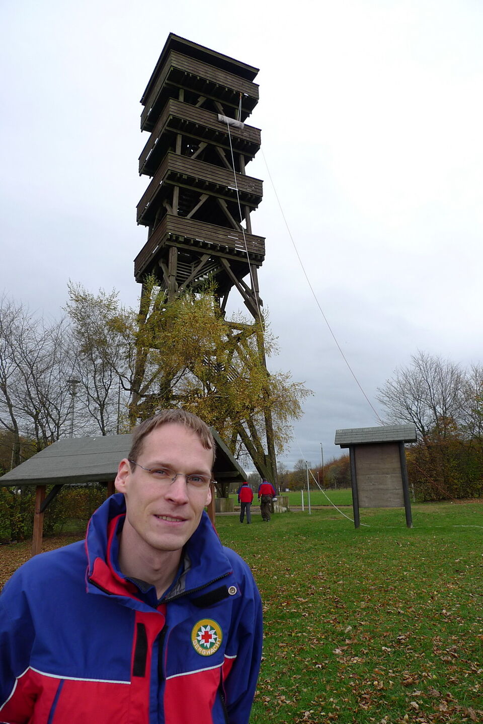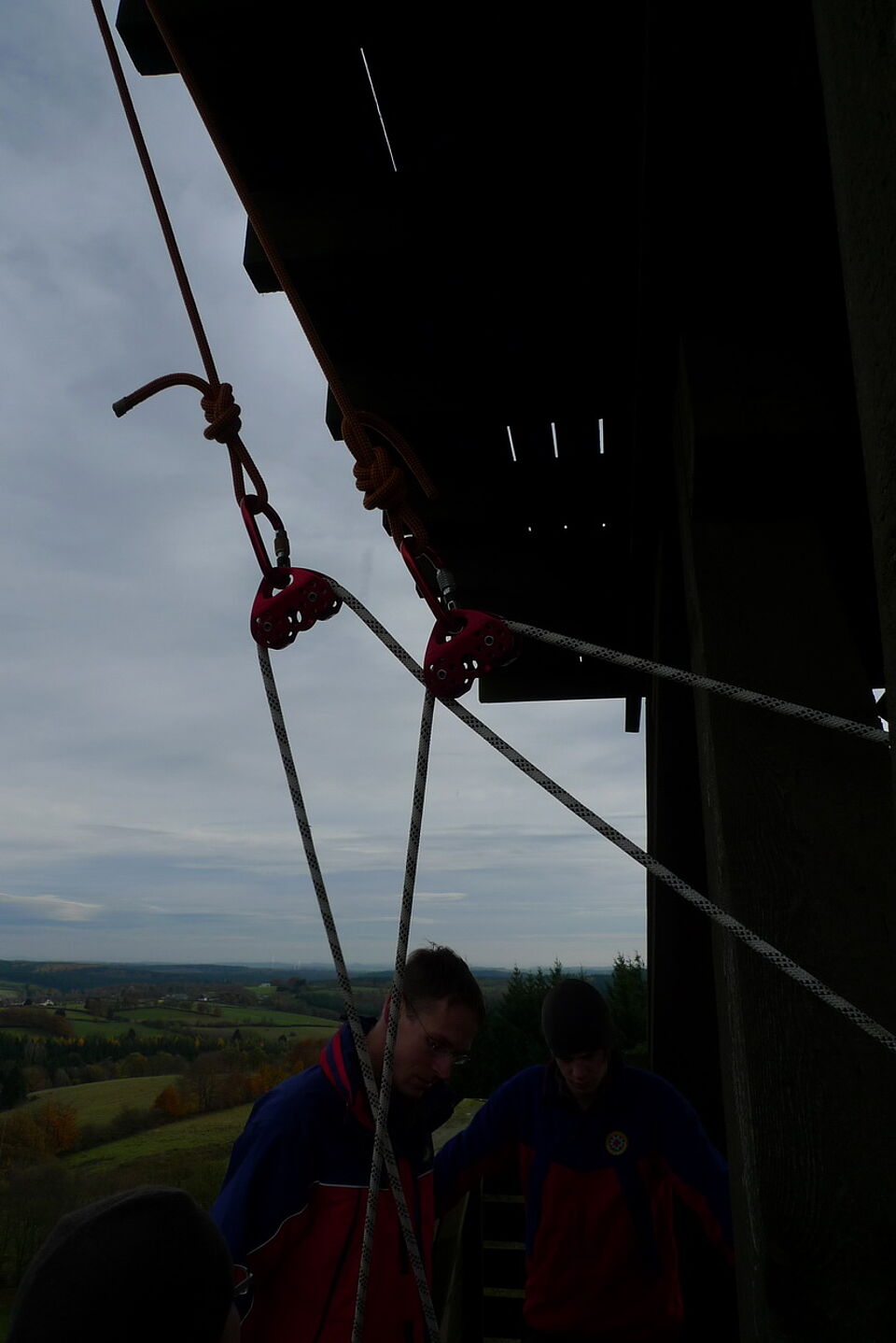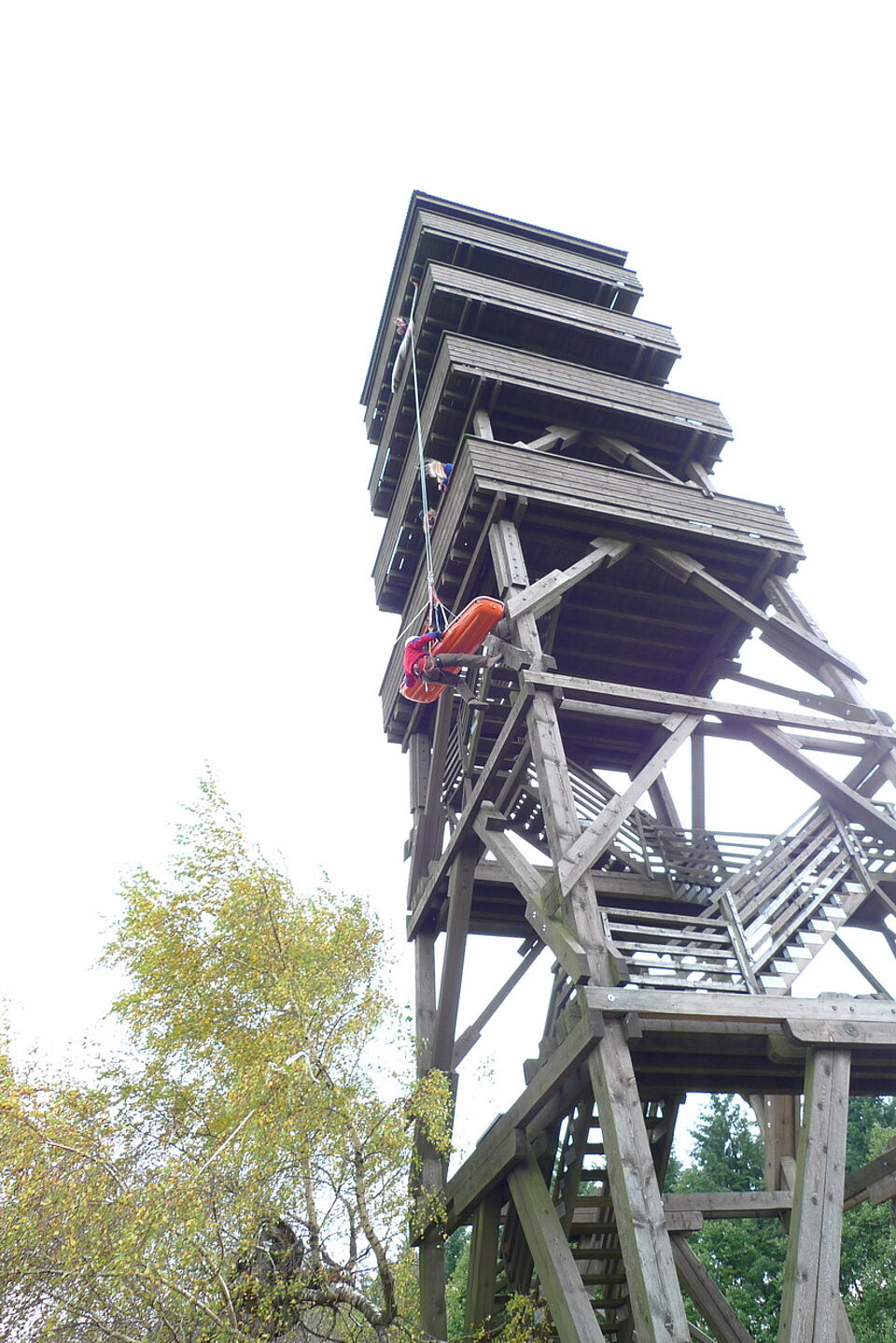 Bild DRK ZR | Auf der obersten Plattform des Udenbrether Turms bereiten die Rotkreuz-Bergwachtler die Rettung eines Verunfallten vor.