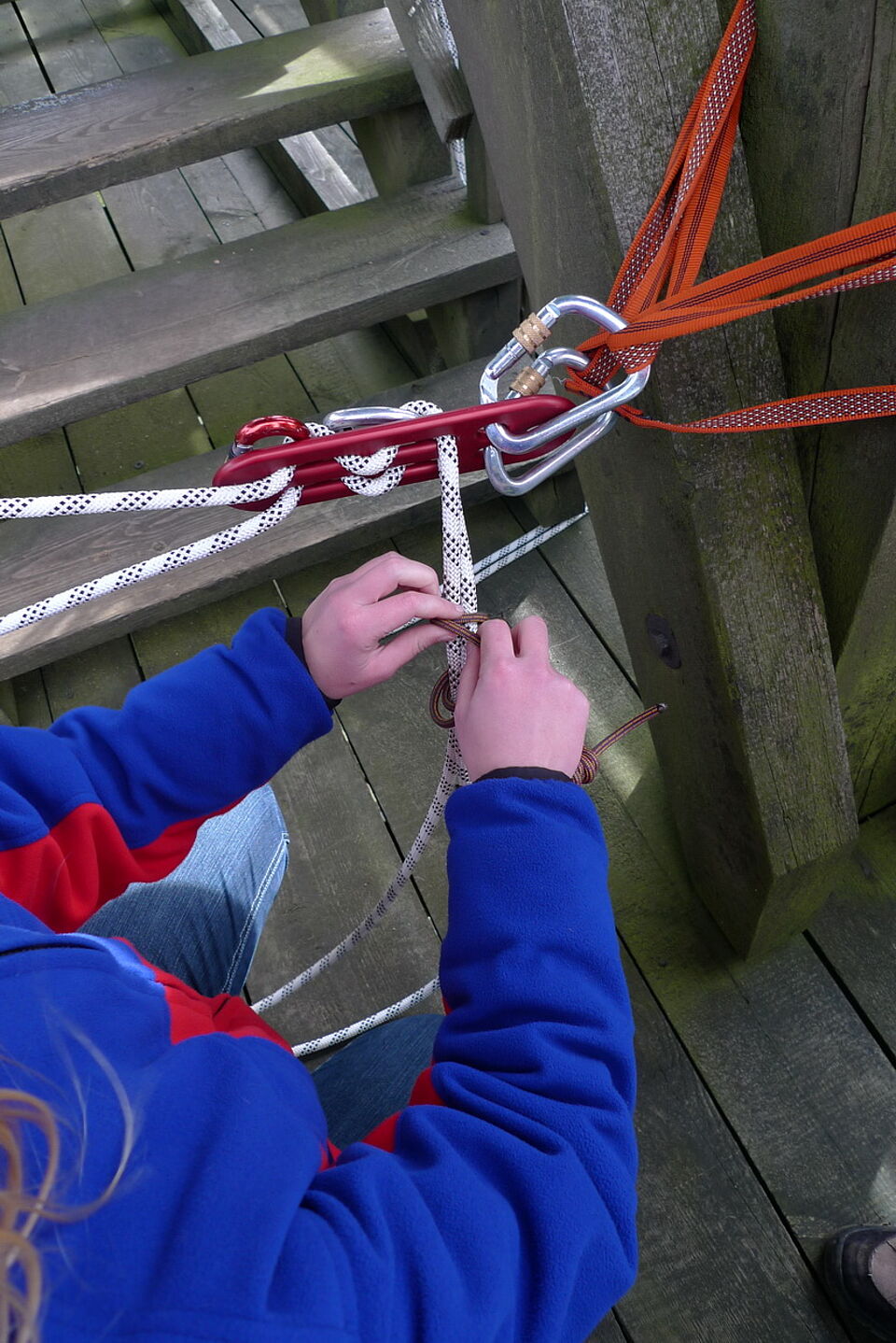 Bild DRK ZR | Beide Seile werden in einem Sicherungsgerät kontrolliert geführt.