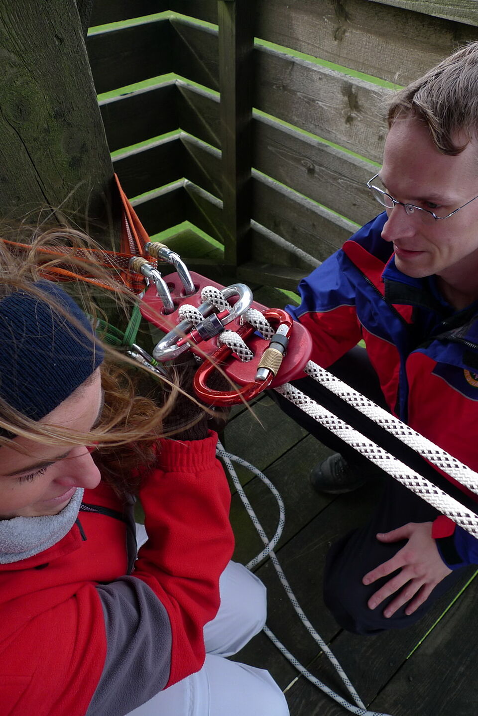 Bild DRK ZR | Die Sicherungsseile werden über Rollen geführt. Zur Sicherheit gibt es immer ein Reserveseil.