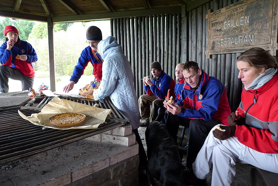 Bild DRK ZR | Nach der Übung gibt es in der Grillhütte einen kleinen Imbiss.