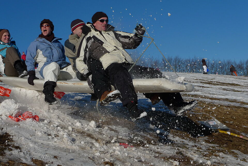Bild DRK ZR | Zu Viert auf einem alten Surfbrett den Hang hinunter, das ist Spaß pur!