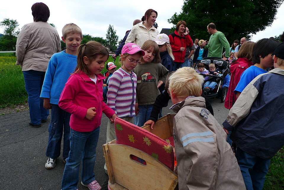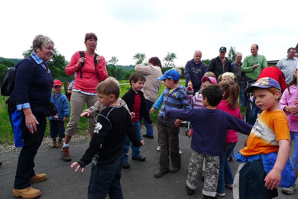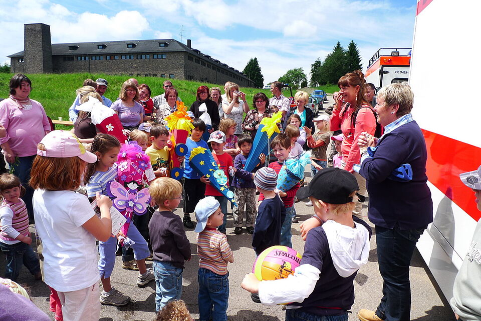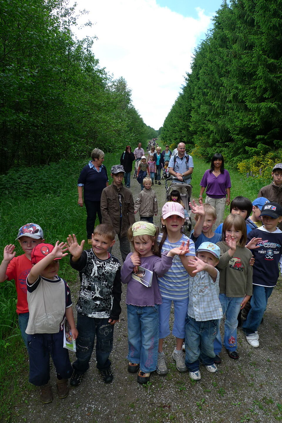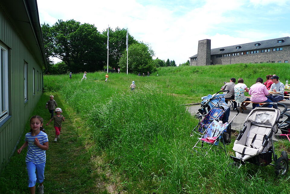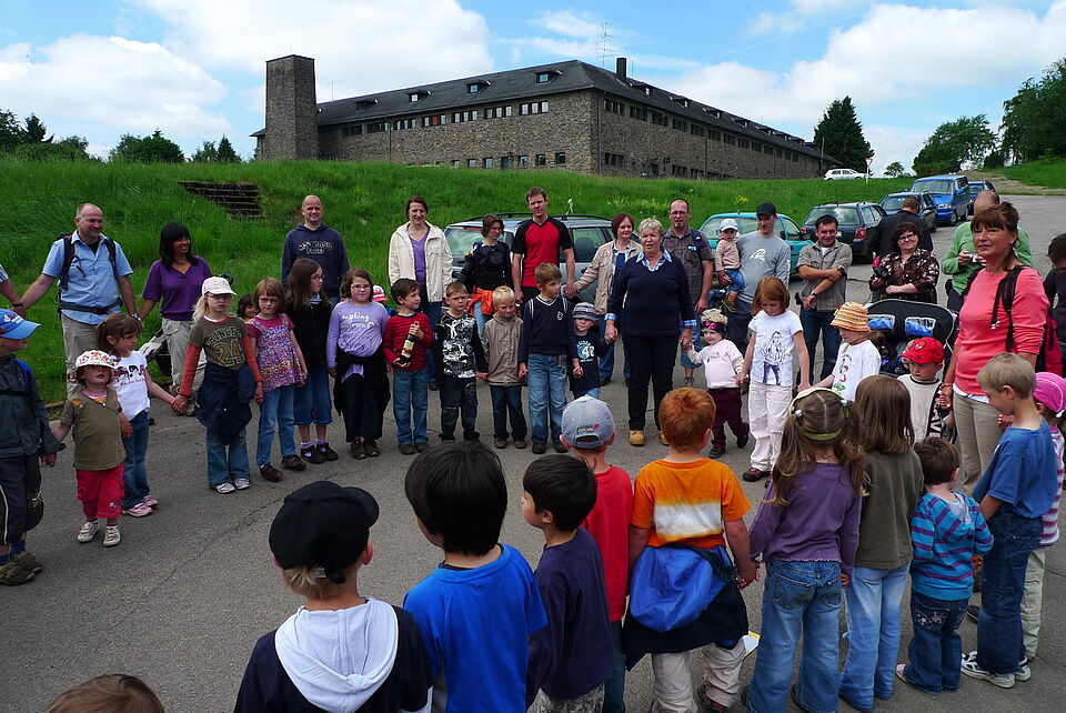 Gemeinsam mit ihren Eltern und vielen Geschwisterkindern wanderte die komplette "Bande" nach Vogelsang zum Jugend-, Natur- und Umweltbildungshaus des Roten Kreuzes.