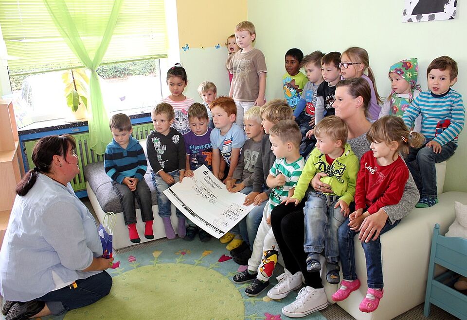 Schleiden-Herhahn – „Wir freuen uns sehr, besonders, weil diese Spende von Kindern für Kinder ist“, sagte Tanja Groß von der Hilfsgruppe Eifel, als sie einen symbolischen Scheck in Höhe von 400 Euro entgegennahm. Überreicht wurde er von vielen kleinen Händen, denn die Kinder der Rotkreuz-Kita Herhahn hatten mit einer tollen Aktion Geld gesammelt. „Wir haben bei der Herhahner Kinderkirmes eine große Tombola organisiert und viele Lose verkauft“, berichtet die Einrichtungsleiterin Julia Jakobs.