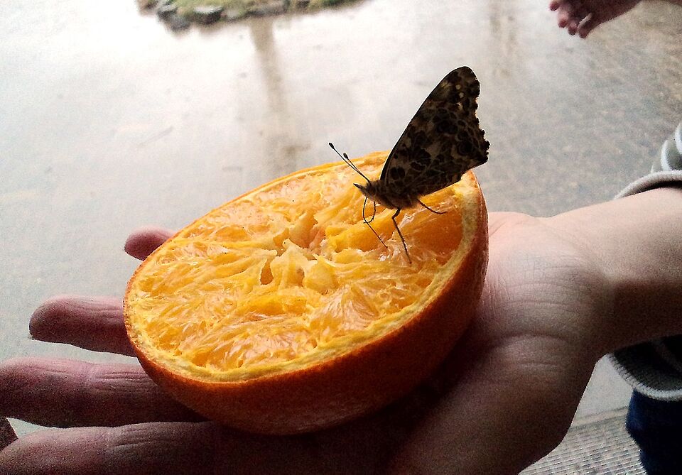 Einige Tage lang wurden die Schmetterlinge mit Früchten und Zuckerwasser gefüttert. Doch dann hieß es Abschied nehmen, und die Falter wurden auf dem Außengelände in die Freiheit entlassen.