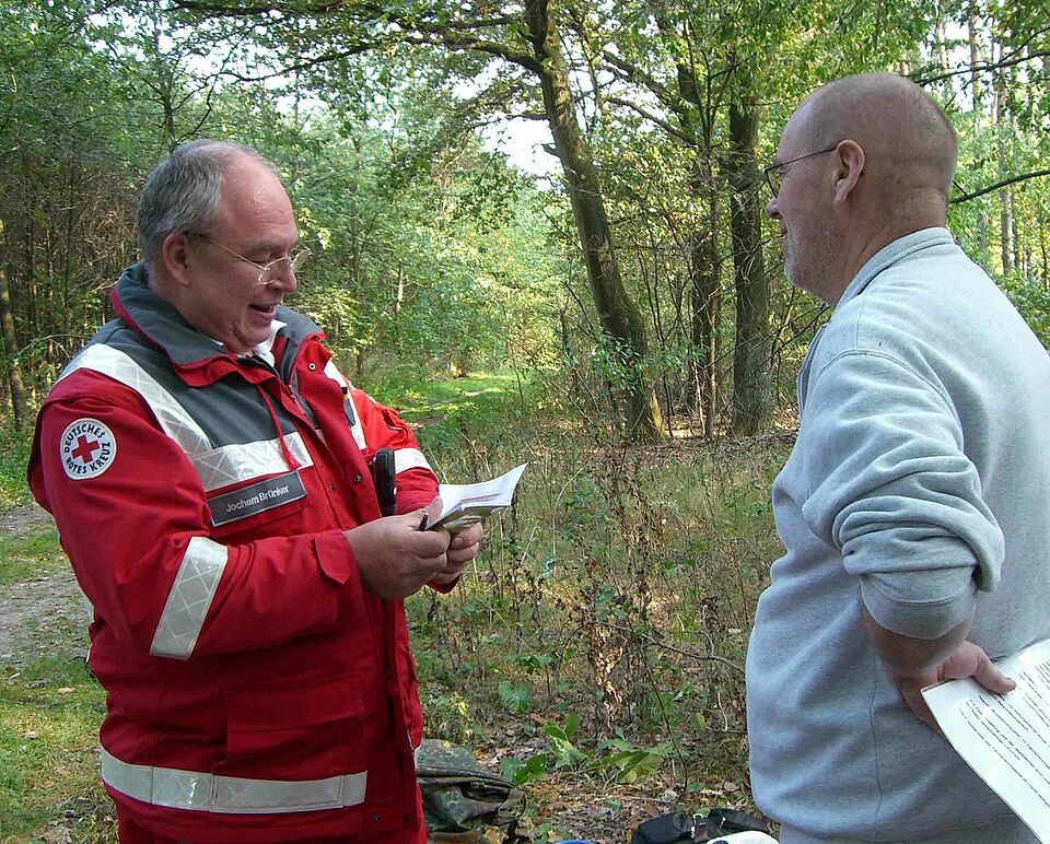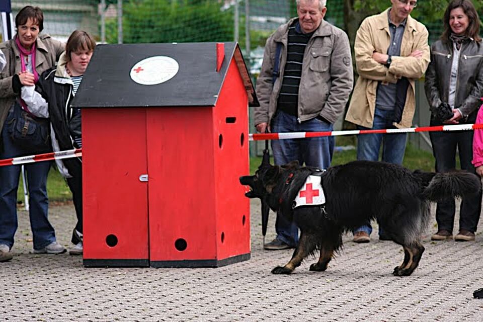 Zunächst mussten 25 Fachfragen richtig beantwortet werden. Nach dem schriftlichen Test folgte die Verweis- und Gehorsamsprüfung. Anschließend mussten in der Suche in einem Waldgebiet zwei Versteckpersonen gesucht, vom Hund sicher verbellt und vom Hundeführer versorgt werden.