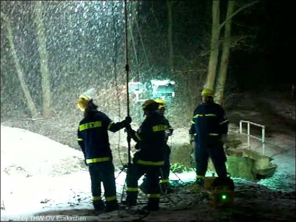 Bei Temperaturen um den Gefrierpunkt und Schneetreiben war das kein einfaches Unterfangen. Wie bereits gewohnt arbeiteten die Helfer des THW und des Roten Kreuzes gut zusammen. Mit Trägertrupps im Rücken versuchten sich die Hundeführer einen Überblick im schwierigen Gelände zu verschaffen. Zum Einsatz kam auch der bei einer Schulung in GPS frisch erlernte Umgang mit den hilfreichen Navigationsgeräten. Dafür nahmen die Kaller Helfer bei einem Seminar des Landesverbandes in Mönchengladbach-Güdderath teil.