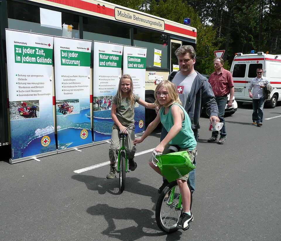 Zu ihrer eigenen Freude wurden die Helfer fortwährend gerade von den jungen Besuchern in Anspruch genommen. Viele male wurden "Führungen" durch den Rettungswagen und den Betreuungsbus unternommen. Dies faszinierte vor allem die Kinder und zeigte zugleich den Eltern, dass auf Vogelsang jeder gut aufgehoben ist.