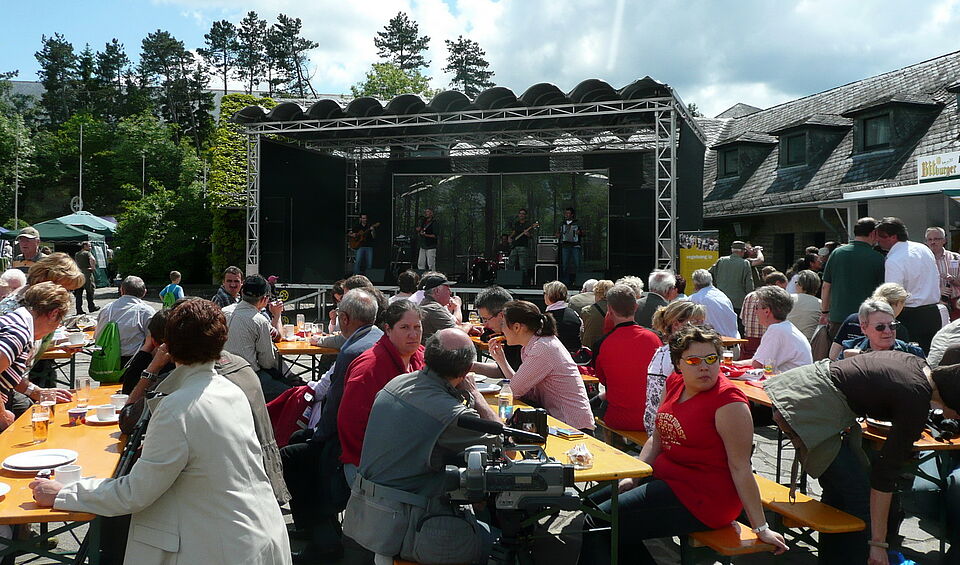 Aber nicht nur "im Grünen" sondern auch im Bereich der Burg Vogelsang herrschte reges Treiben. Diverse Aussteller aus der Region nutzten den Festtag und präsentierten unter dem Motto "Countdown 2010" Produkte und Neuerungen zum Erhalt der biologische Vielfalt. Die kleinen Besucher konnten mit Esel und Ziege auf Tuchfühlung gehen, oder mit Oma und Opa eine Kutschfahrt durch die Natur genießen.