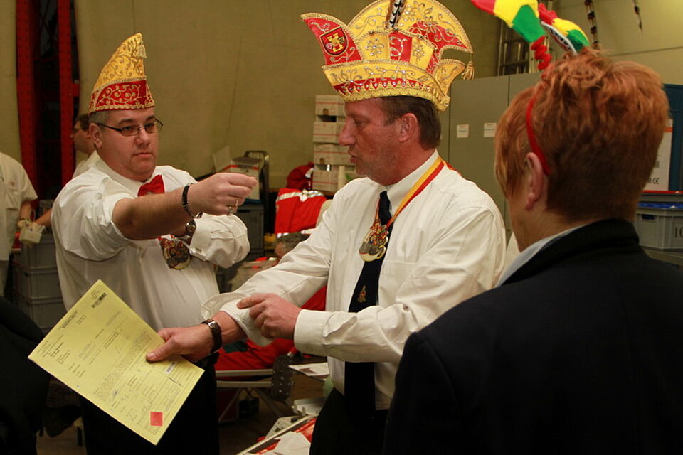 Natürlich musste auch die Tollität zunächst einmal ihre Blutgruppe bestimmen lassen und zu einem Arztgespräch antreten. Doch bevor Dr. Annegret Butke, die extra aus Bonn angereist war, die närrische Hoheit vertrauensvoll befragen konnte, wurde ihr vom Prinzen der Sessionsbutton angeheftet.