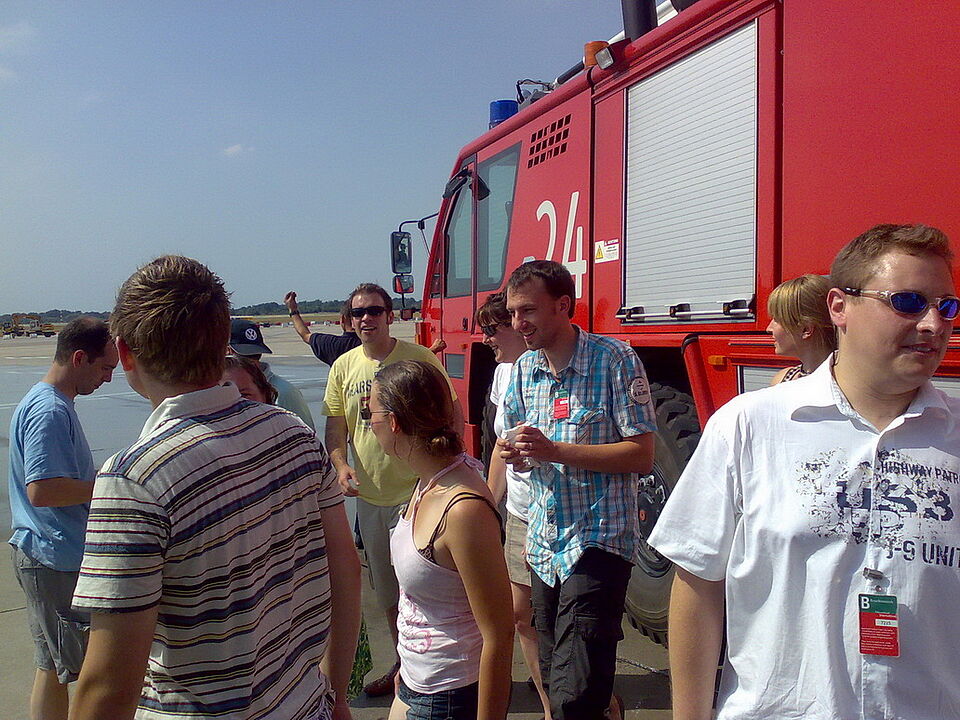Bild DRK SB | ...erlebten die Rotkreuzler den Flughafenbetrieb aus der Sicht der Feuerwehrkameraden.