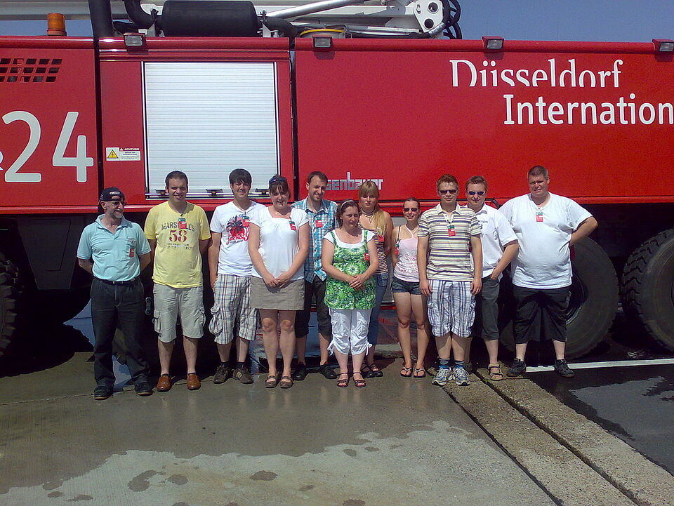 Am vergangenen Samstag besuchten die Rotkreuzaktiven der Einsatzeinheit Kall die Feuerwehr auf dem Flughafen Düsseldorf.