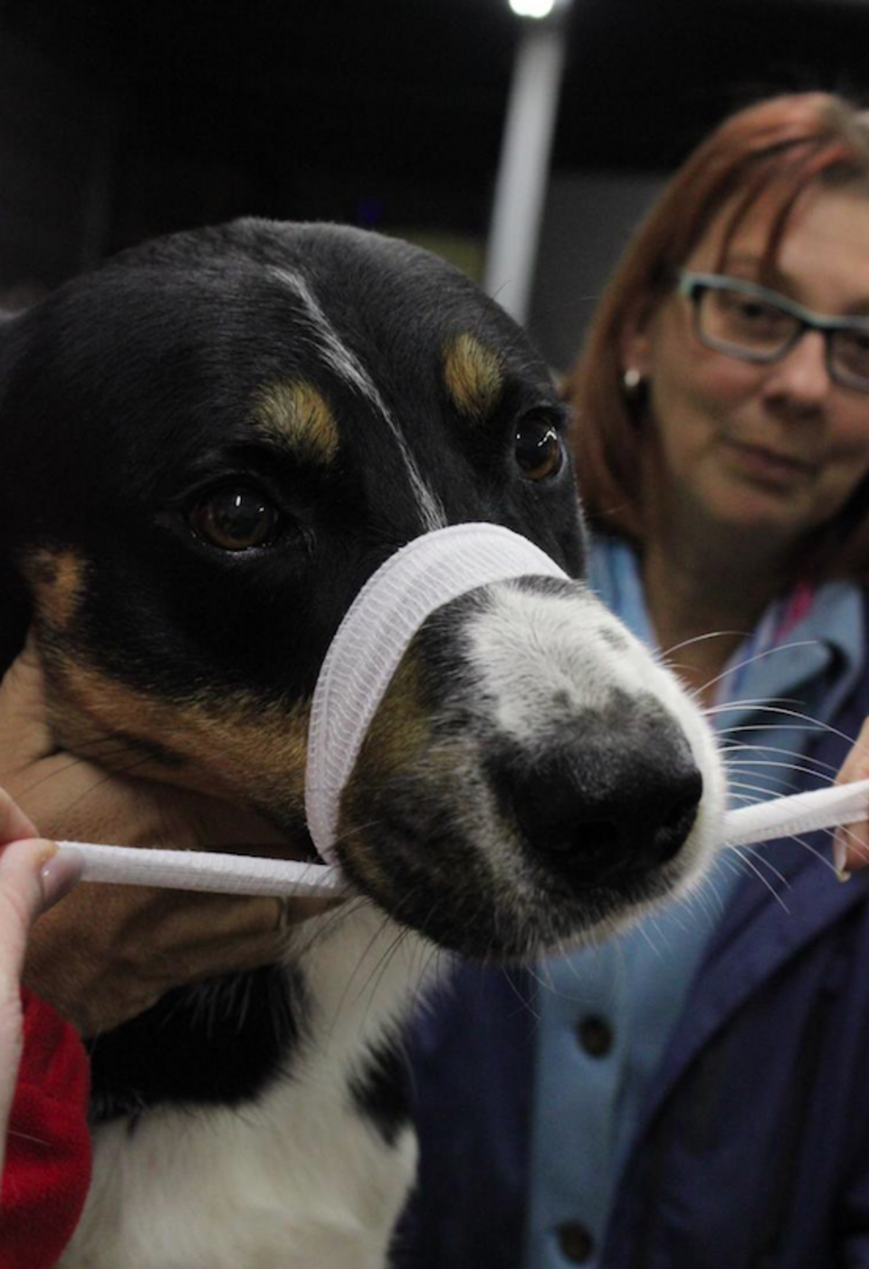 Tierarzt Dr. Hülsmann vermittelte Erste Hilfe bei Verletzungen ebenso wie Untersuchungs- und Gewöhnungsübungen. Dazu zählten Hochheben und Transport, Fixieren des Fanges, Ruhigstellen einer Gliedmaße, Fixieren des Hundes für bestimmte Untersuchungen, Untersuchung von Ohr und Auge, Verabreichung von Medikamenten, Behandlung von Verletzungen der Haut, im Kopfbereich, an Auge, Ohr und Nase.