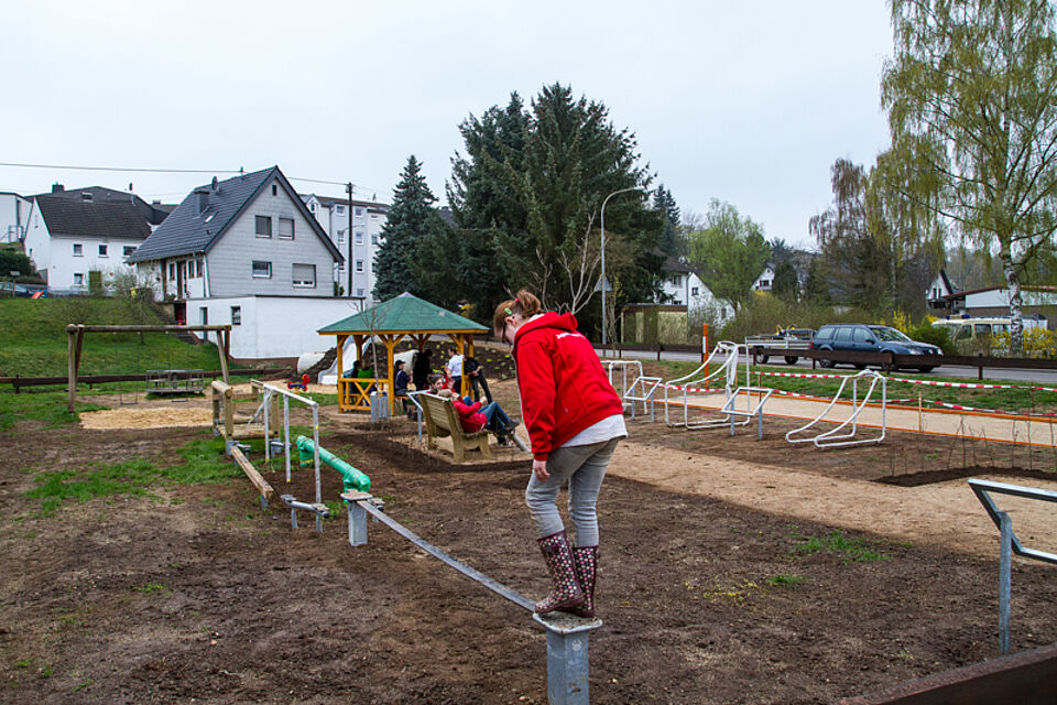 Auf dem Platz ist denn auch schon so einiges zu sehen: Auffällig sind unter anderem die fest montierten Fahrradpedale vor den Sitzbänken. Während der Nachwuchs sich an den Spielgeräten austobt, brauchen Eltern und Großeltern demnächst nicht mehr nur untätig herumzusitzen, sondern sie können ebenfalls etwas für ihre Gesundheit tun. "Ich habe diese Einrichtung in einem englischen Park gesehen", berichtete Schmitz. "Die Pedale vor den Sitzbänken wurden dort so gut angenommen, dass ich mir dachte, so etwas brauchen wir auch in Kall."