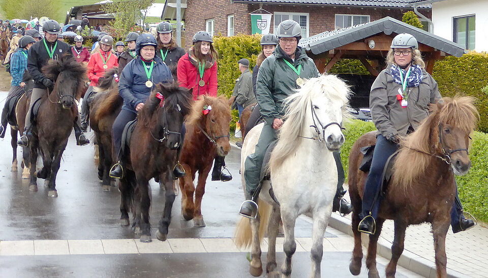 Nach nur 42 berittenen Pilgern im vergangenen Jahr machte sich schon vor Abritt um 11.15 Uhr große Erleichterung bei Robert Ohlerth, Gerhard Mayr-Reineke und ihrem Team vom Sachausschuss Sankt-Georgsritt des Kallmuther Pfarrgemeinderates breit. Aus allen Himmelsrichtungen ritten kleine Trupps und Einzelreiter auf den temporären Wallfahrtsort im Schatten des Mechernicher Bleibergs zu.