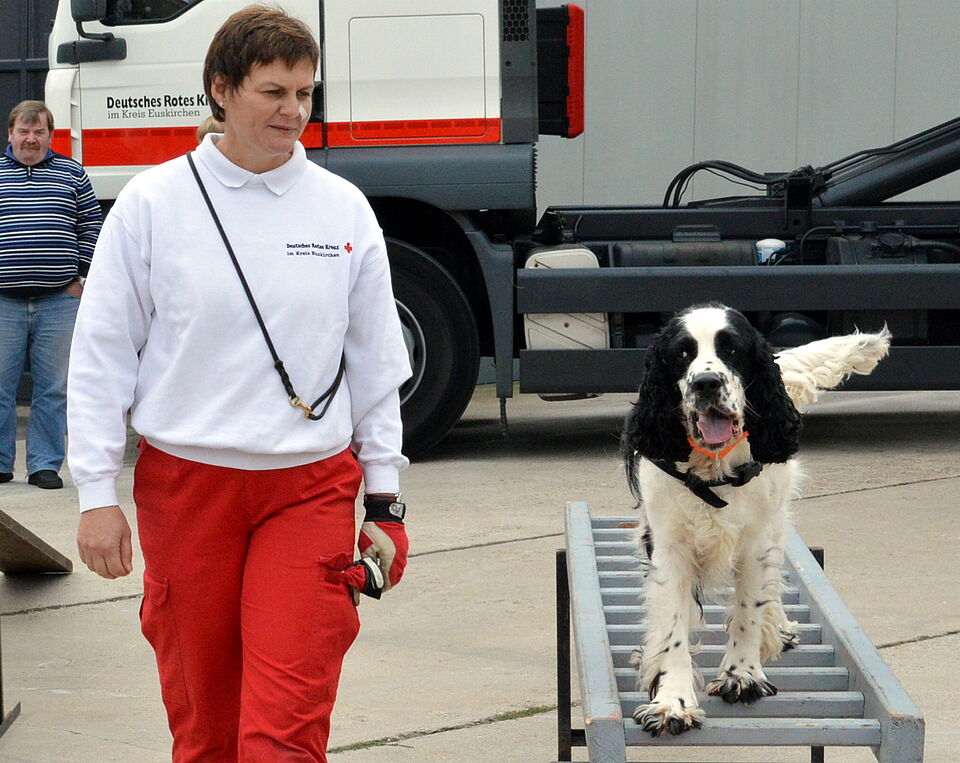 Nachdem am Dienstag die Polizei vergeblich nach ihm gesucht hatte, forderte sie zur Unterstützung die Rettungshundestaffel Kall an, die mit mehreren Teams zum Einsatzort fuhr. Dank einiger Anhaltspunkte zum möglichen Aufenthaltsort des Mannes war die Suche dann schnell von Erfolg gekrönt: Nur 30 Minuten benötigte der Englische Springer Spaniel „Tristan“ von Hundeführerin Monika Artz, um den jungen Mann in einem Waldgebiet in der Nähe seines Wohnortes aufzustöbern. Dort übernahmen die Rotkreuzler auch die Erstversorgung des Mannes, bevor dieser mit dem Rettungswagen ins Krankenhaus gebracht wurde.