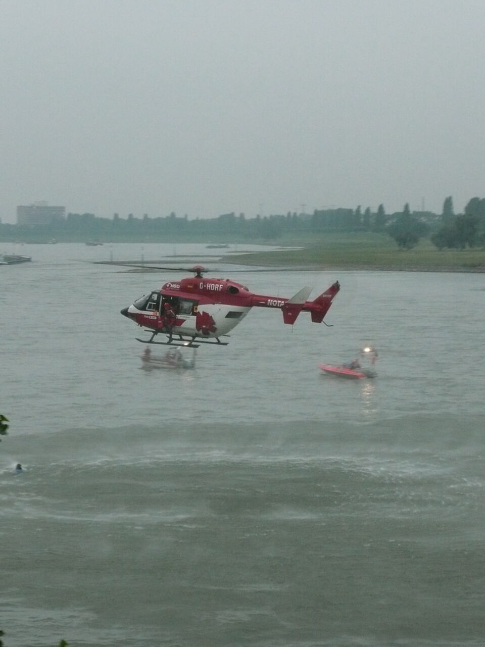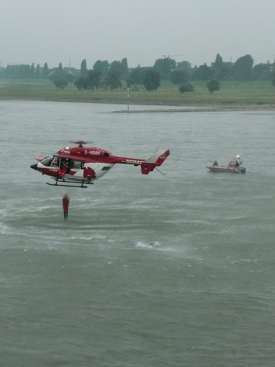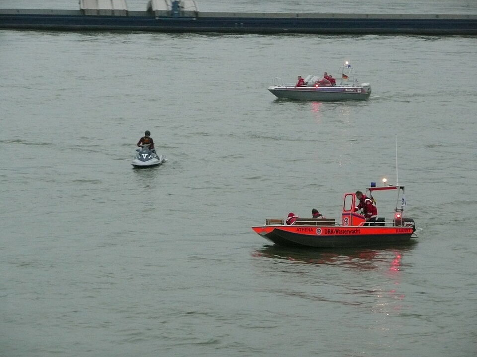 Am Samstagnachmittag wurde den Wasserrettern der Wasserwacht des Roten Kreuzes und der DLRG ein großes Szenario auf dem Rhein in der Nähe des Kölner Doms geboten.