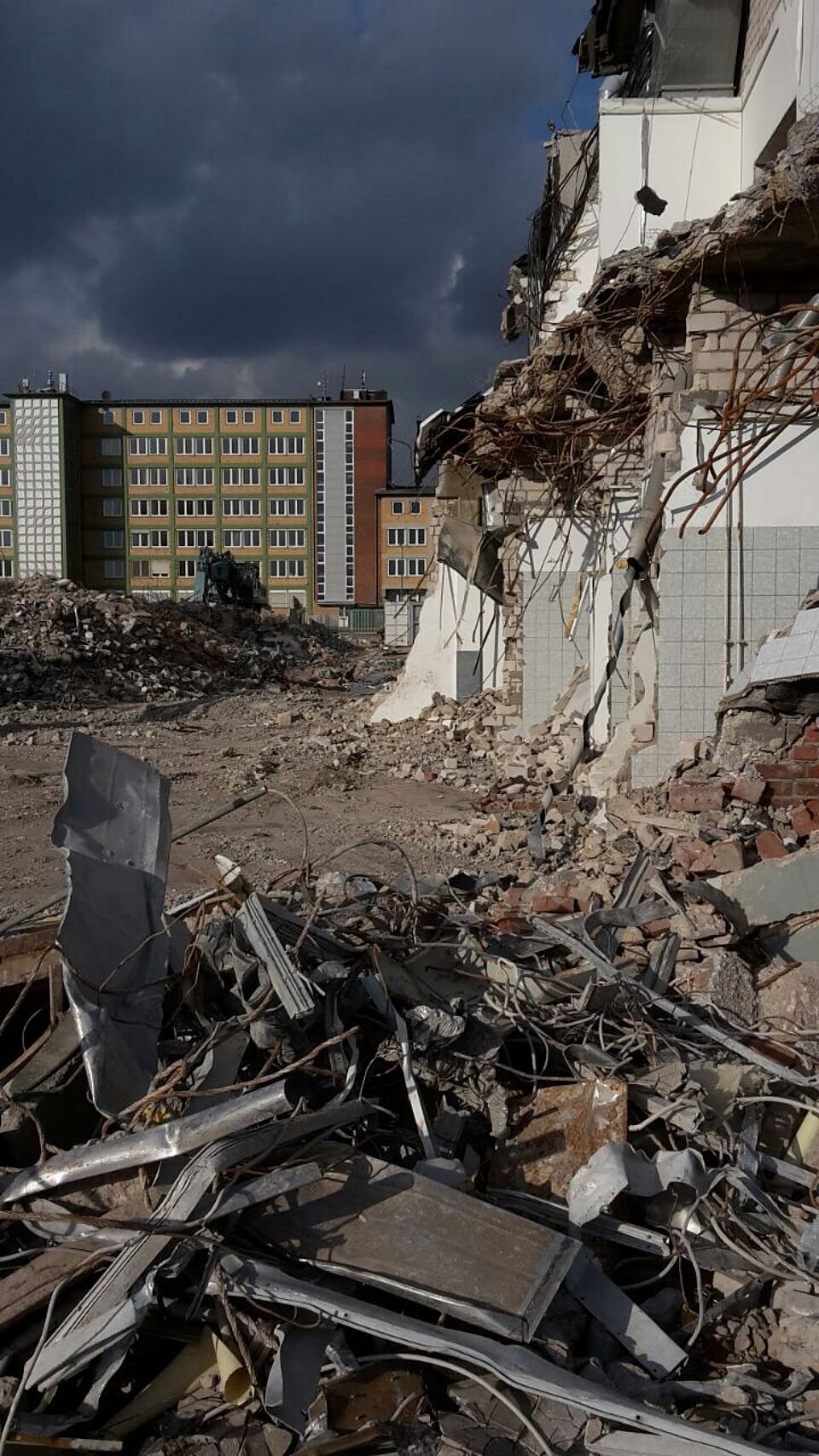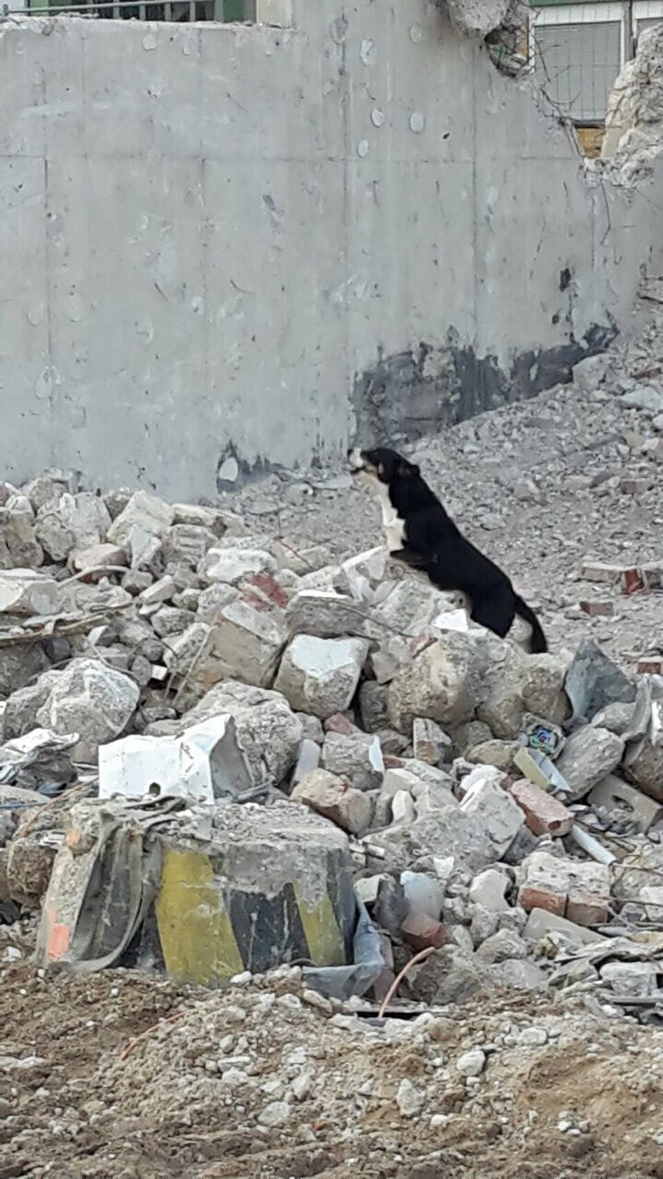 Spitze Moniereisen und loser Untergrund erschwerten das Überlaufen des abgerissenen Gebäudes für die Hunde, die sich gleichzeitig noch darauf konzentrieren mussten, Geruch aufzunehmen und einen Fund durch anhaltendes Bellen anzuzeigen. Dadurch konnten äußerst realistische Bedingungen geschaffen werden.