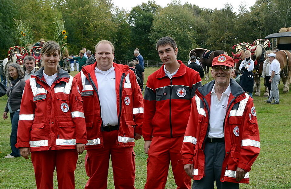 Hinter den Kulissen wachte einmal mehr das Rote Kreuz im Kreis Euskirchen, Ortsverband Mechernich, über die Gesundheit und Sicherheit der vielen Menschen. Sascha Suijkerland und seine Leute streiften sowohl in Zweiertrupps mit Rettungsrucksäcken durchs Museum, als sie am Rande der Baugruppe Niederrhein eine Rettungsstation mit zwei Fahrzeugen unterhielten.
