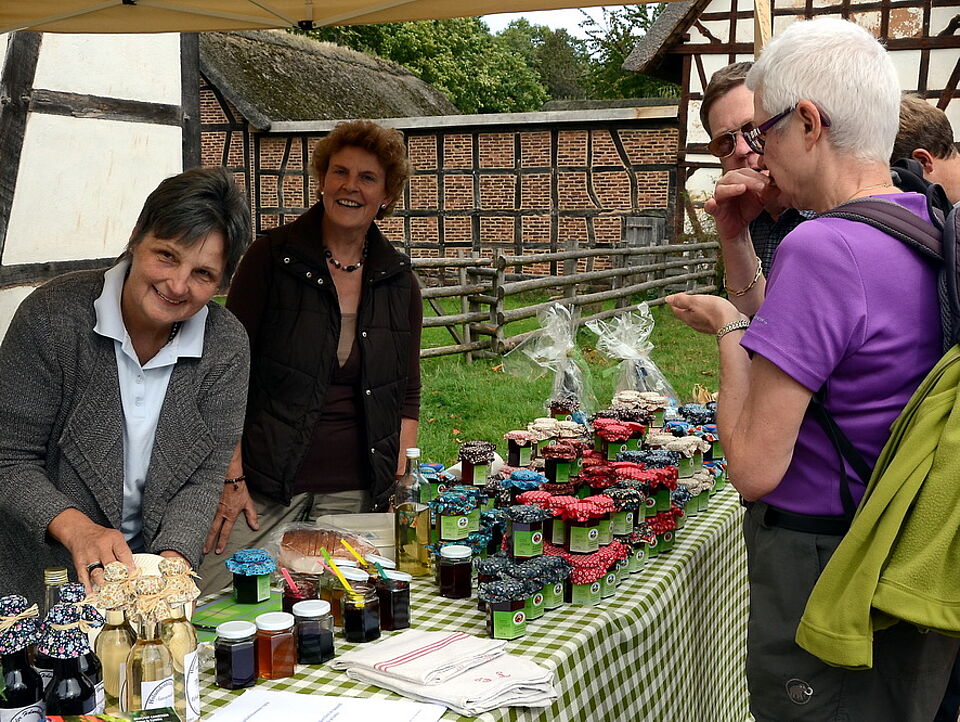 Im vergangenen Jahr wurde eine durchschnittliche Verweildauer von fünf Stunden ermittelt, während derer die Besucher den landwirtschaftlichen und hauwirtschaftlichen Vorführungen zuschauen. Und essen, trinken und kaufen, was an Köstlichkeiten, aber auch an Korbwaren, Textilien, an Ort und Stelle gebundenen Besen, Spielzeug und Pferdegeschirr angeboten wird. „Das ist sensationell lange“, freute sich Museumschef Dr. Josef Mangold. Ein Riesenkompliment für ihn, Dr. Faber und ihre Crew.