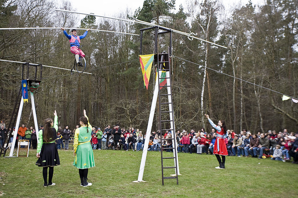 Einer der Höhepunkte des umfangreichen Programms ist die Hochseiltruppe „Geschwister Weisheit“.