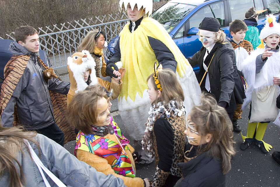 Zum ersten Mal sind auch acht Klassen des Turmhofgymnasiums dabei, die haben sogar ihre Big-Band mitgebracht!“, so der „Ober-Willy“, wie der überzeugte Karnevalist und Moderator des Kommerner Rosenmontagszugs in jecken Kreisen liebevoll genannt wird. Zwischendurch verteilte Willy Gemünd fleißig Karnevals-Orden.