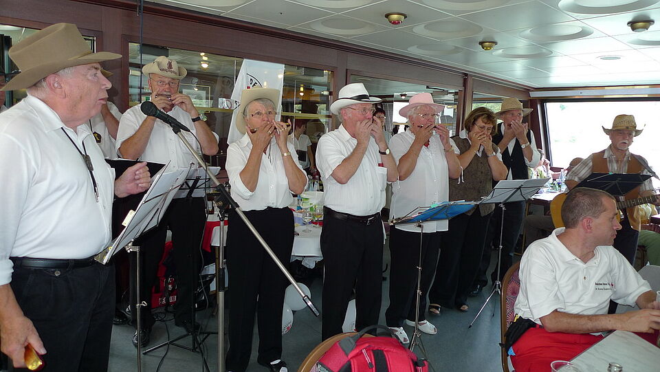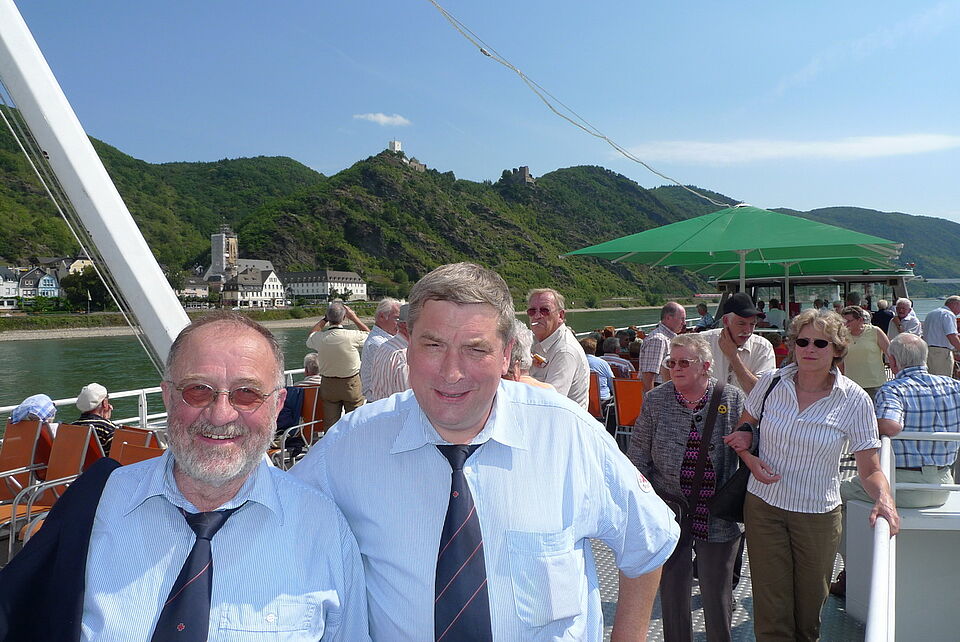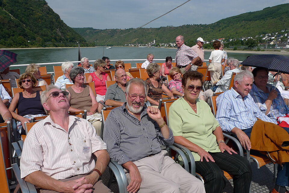 Von Koblenz ging es dann mit dem Schiff den Rhein hinauf bis zur Loreley. Bei munteren Klängen und strahlendem Sonnenschein waren alle Gäste bei bester Laune.
