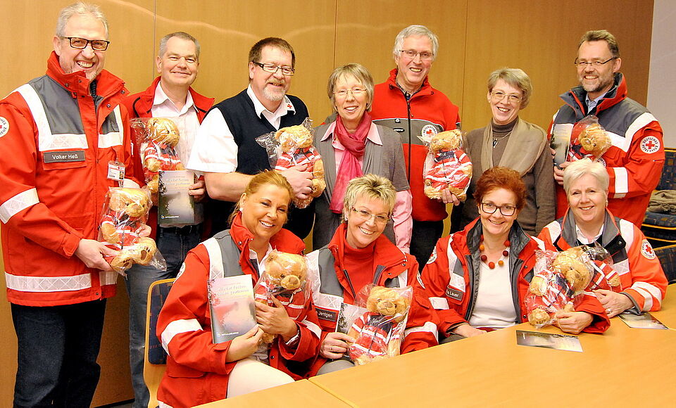 Die Wirkung der Teddys in ihren rotweißen Retter-Uniformen wissen die KID-Mitarbeiter ebenfalls zu schätzen. „Wir hatten auch schon Entchen. Aber die hatten längst nicht den Effekt, den so ein Teddybär hat“, sagte Bert Spilles, DRK-Bereichsleiter Einsatzdienste. Und dass die plüschigen Gesellen nicht nur dabei helfen, mit Kindern ins Gespräch zu kommen, berichtete KID-Mitarbeiter Volker Heß. „Als ich zu einem Einsatz bei einer Frau gerufen wurde, deren Mann plötzlich verstorben war, sah ich, dass im Zimmer viele Stofftiere waren. Auch hier hat der Teddy geholfen.“