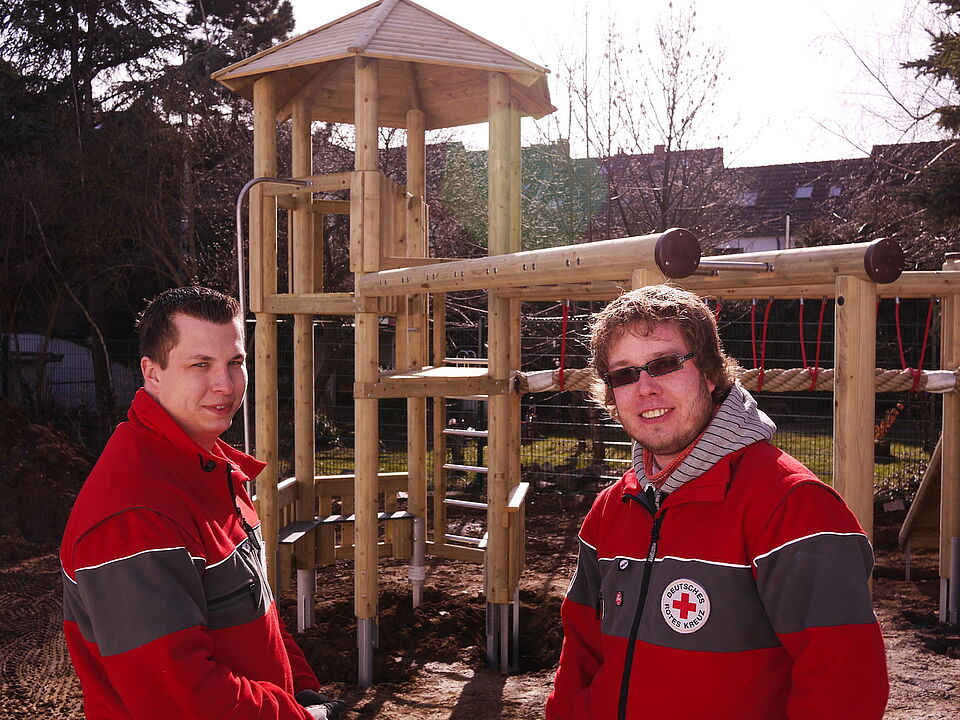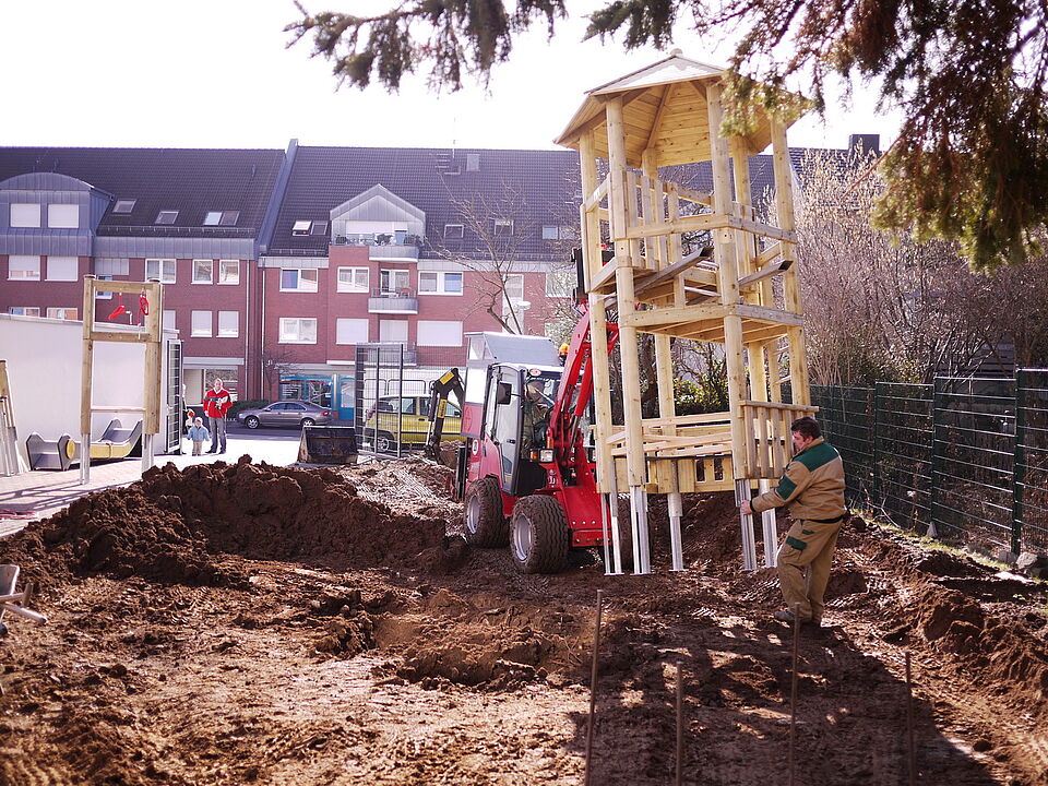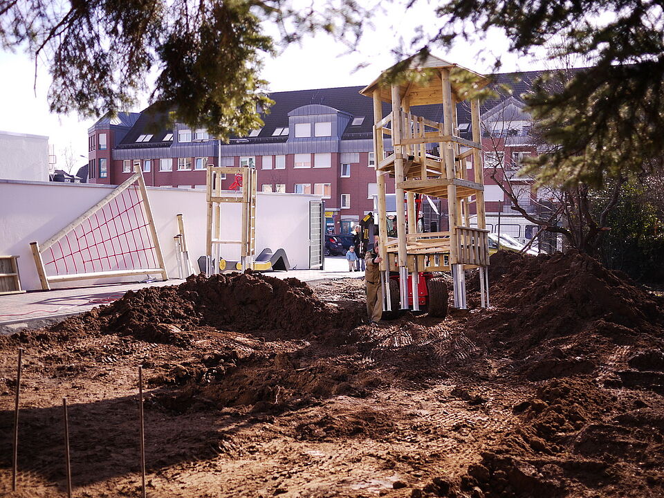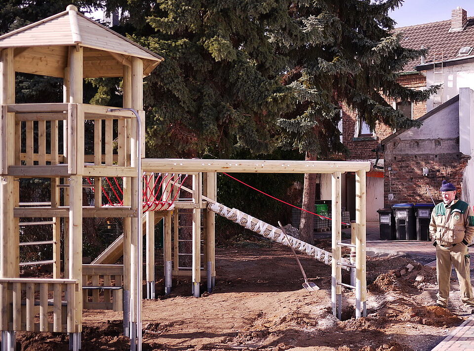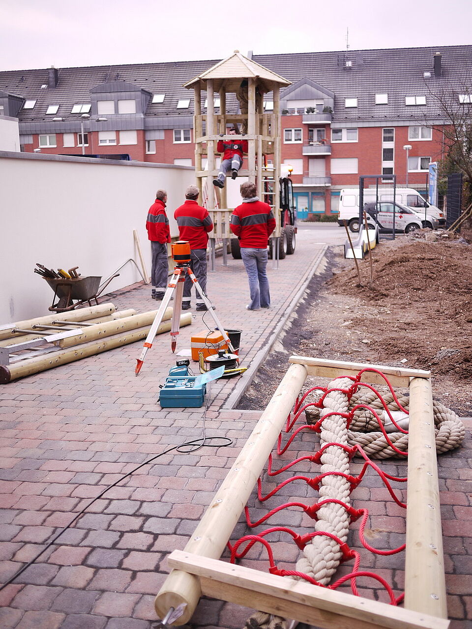 Gerade errichten die Rotkreuz-Handwerker eine tolle Kinderkletterlandschaft, zum Frühjahr soll der Park fertig sein.