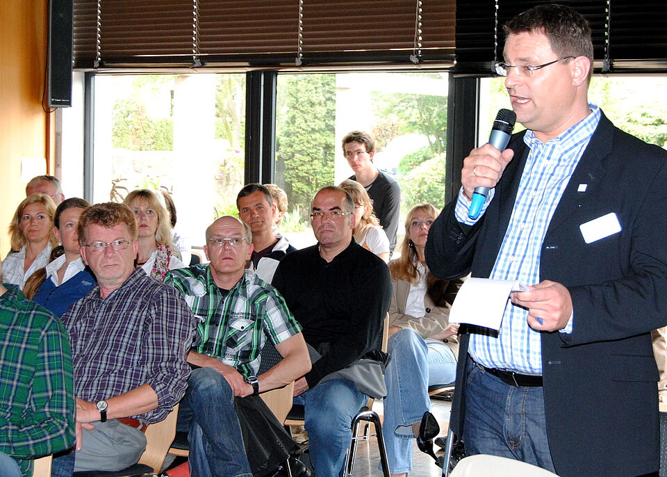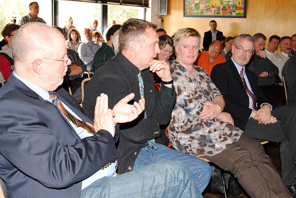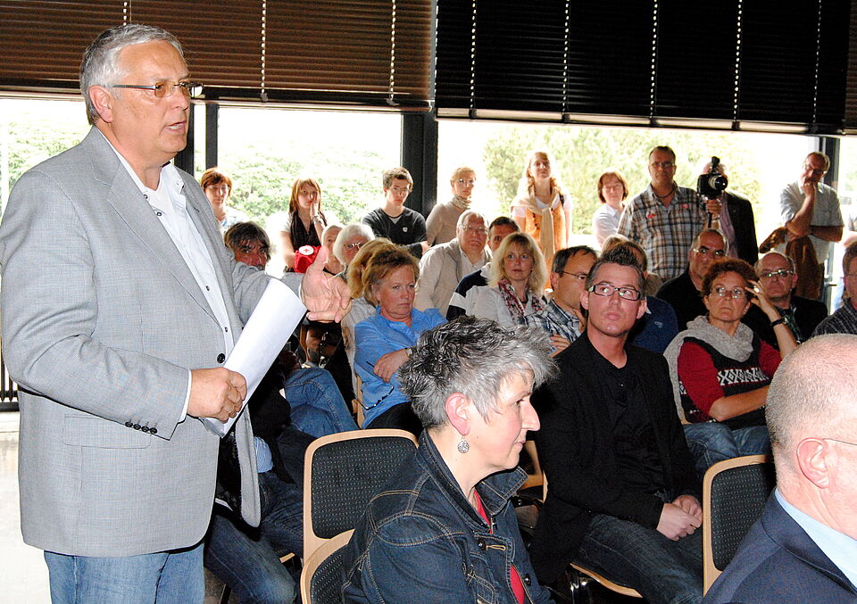 Nach der Eröffnung und Begrüßung durch den Vorsitzenden der AGW (Arbeitsgemeinschaft der Wohlfahrtsverbände im Kreis Euskirchen), Rolf Klöcker (Rotes Kreuz) will Bernd Altgen, der Vorstandsvorsitzende der VR-Bank Nordeifel, der federführend mit an einem Netzwerk „Familie und Beruf“ von Unternehmen und Verbänden in der Eifel arbeitet, mit einem kurzen Impulsreferat in das Thema einführen.