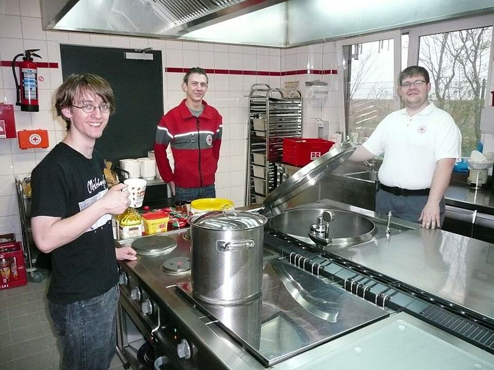 Das Rote Kreuz der Kreisstadt Euskirchen hatte bereits vor einigen Monaten seine Unterstützung zugesagt. Bereits am frühen Samstagmorgen traf sich ein Team der Rotkreuzgemeinschaft um unter Fachmännischer Anleitung von Verpflegungsprofi Dirk Kristahl (Zugführer der Einsatzeinheit Euskirchen und langjähriger Ausbilder im Betreuungsdienst) die Verpflegung zuzubereiten.