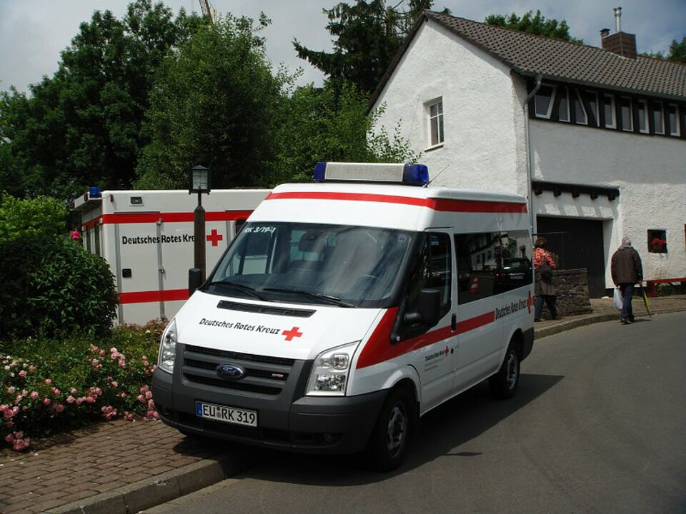Kronenburg - Der Kronenburger Flohmarkt war die erste Betreuung für den letzte Woche erst in Dienst gestellten neuen Rettungswagen des Rotkreuz-Ortsvereins Dahlem. Florian Krumpen: "Wir hoffen, dass dieser uns, genau wie unser alter Rettungswagen „Ewald“ viele Jahre sicher und gut zu unseren Betreuungen und Einsätzen bringt."